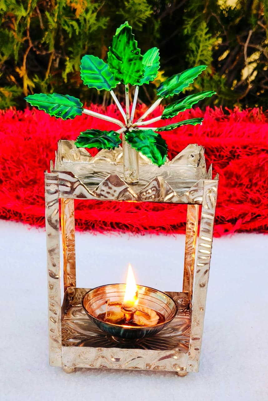 German silver Nakkashi Tulsi vrindavan with akhand tulsi deepam