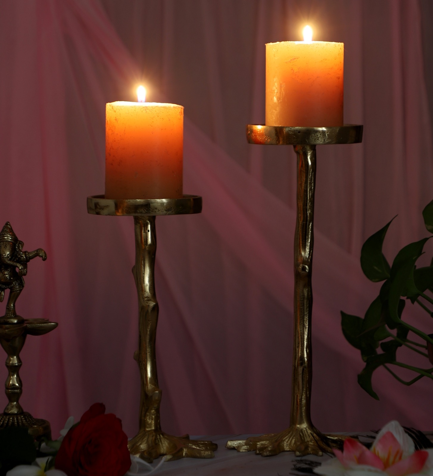 Aluminum Candle Stand Set of 2 Plant Stem Styled