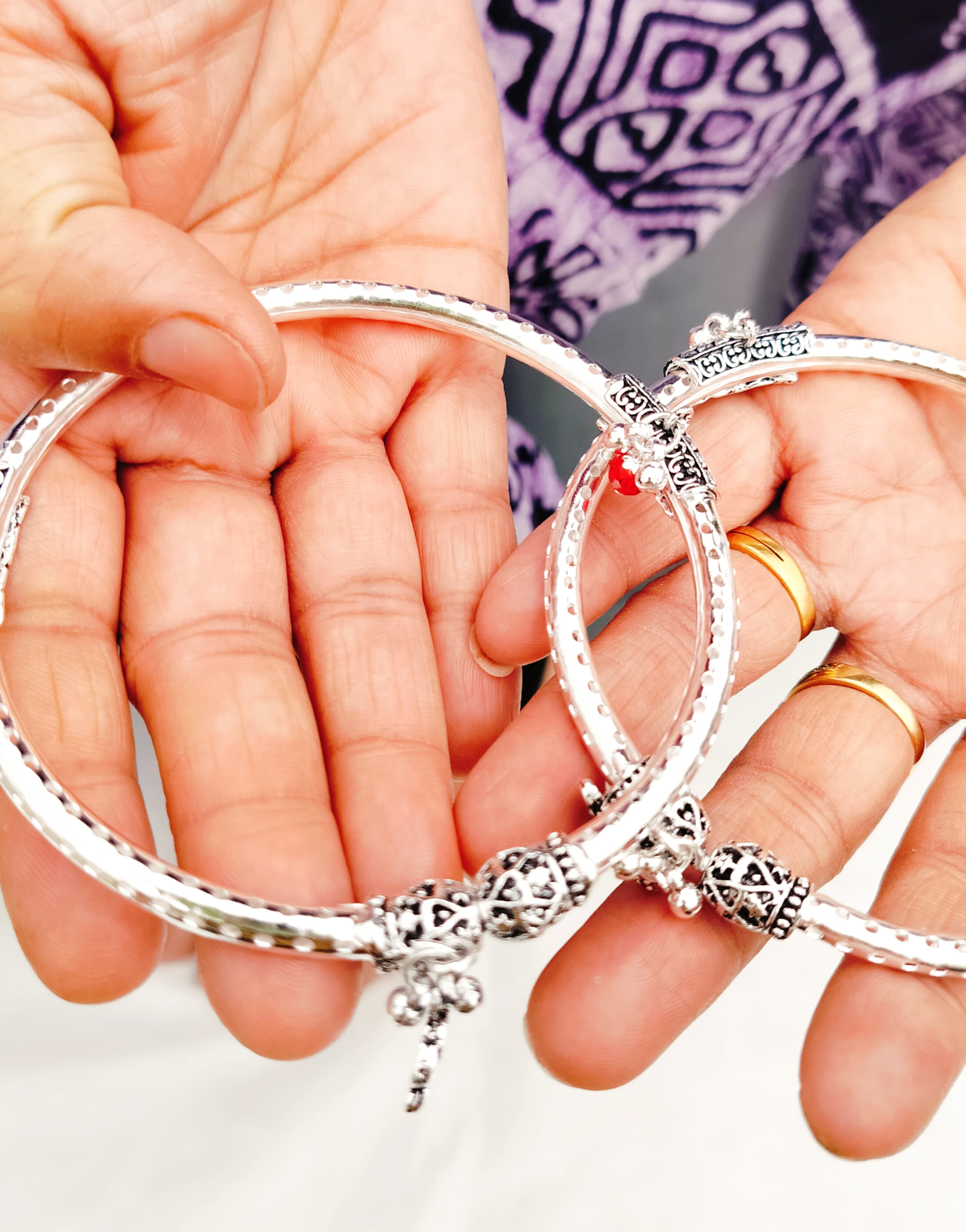 1. Antique German silver adjustable Ankle kada pair