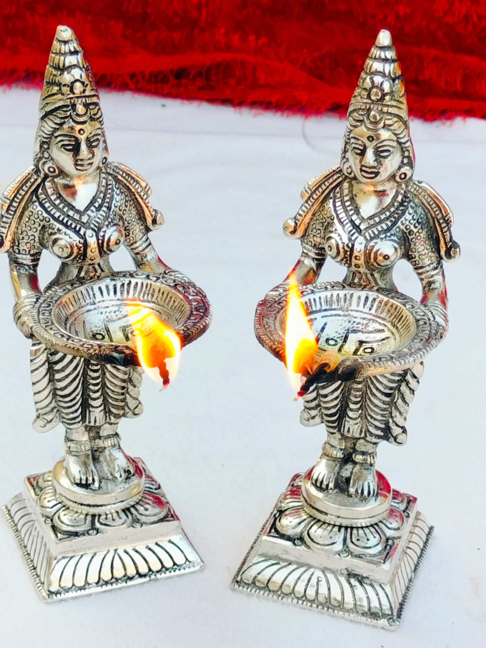 1. Antique German silver big size lady diya pair