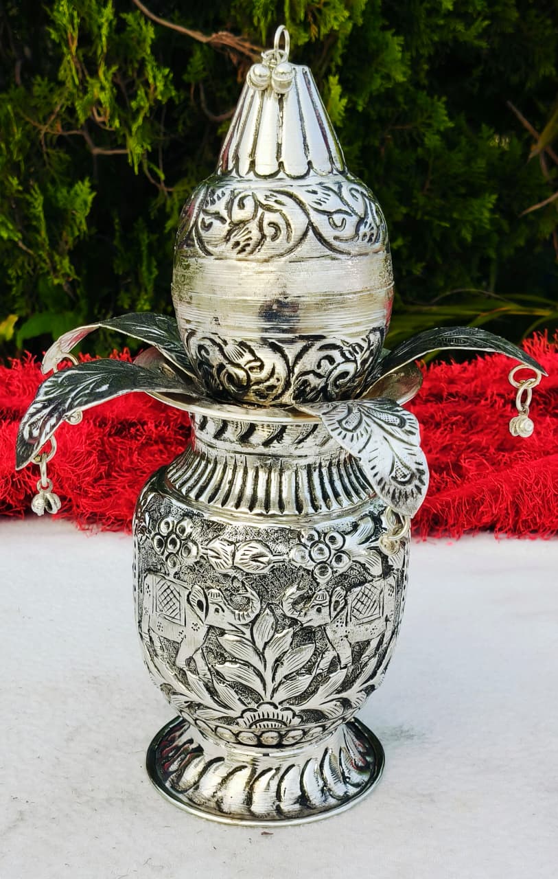 1. Antique German silver Kalash set with detachable mango leaf & coconut