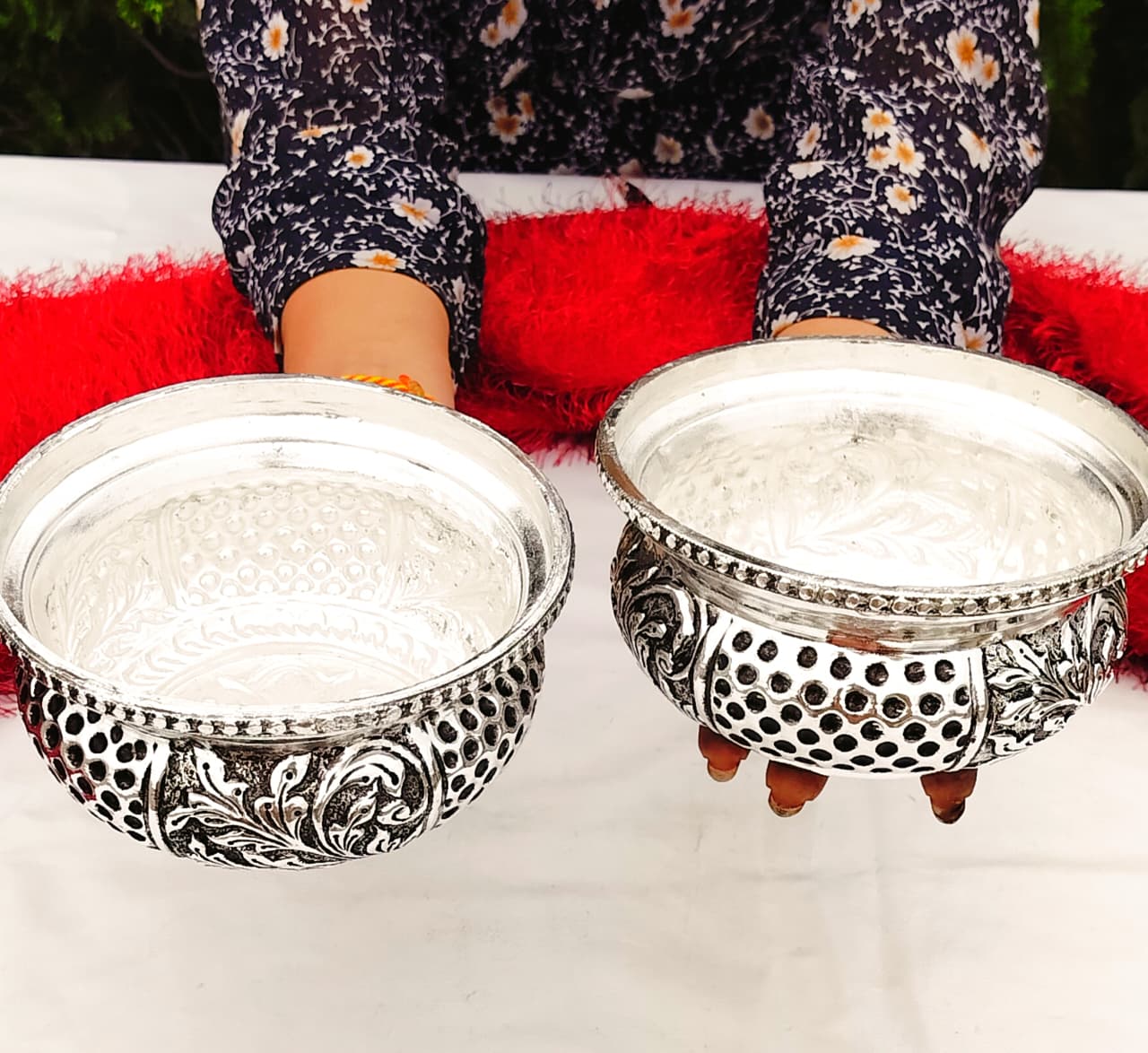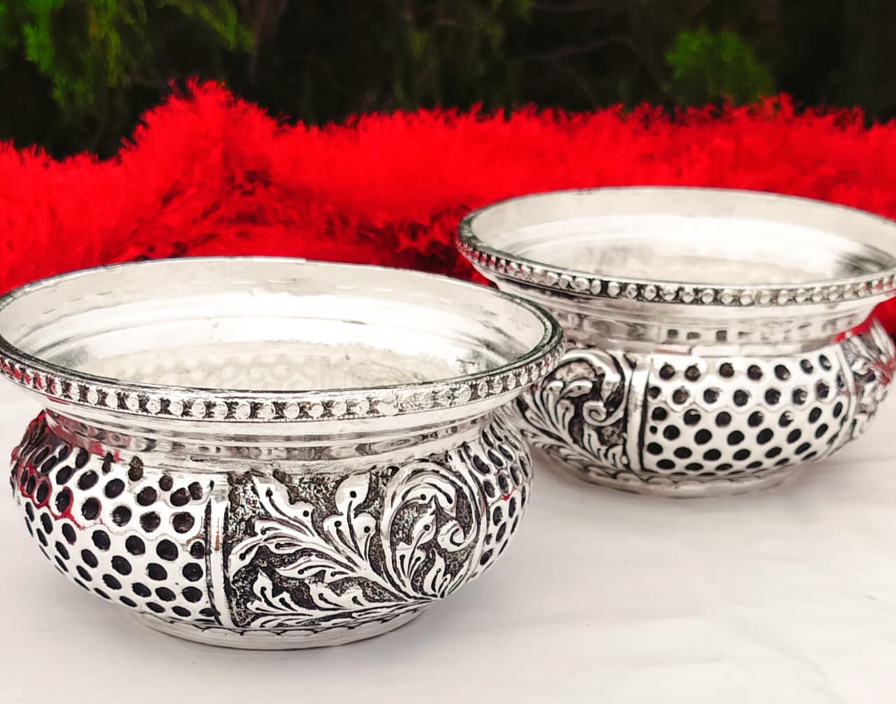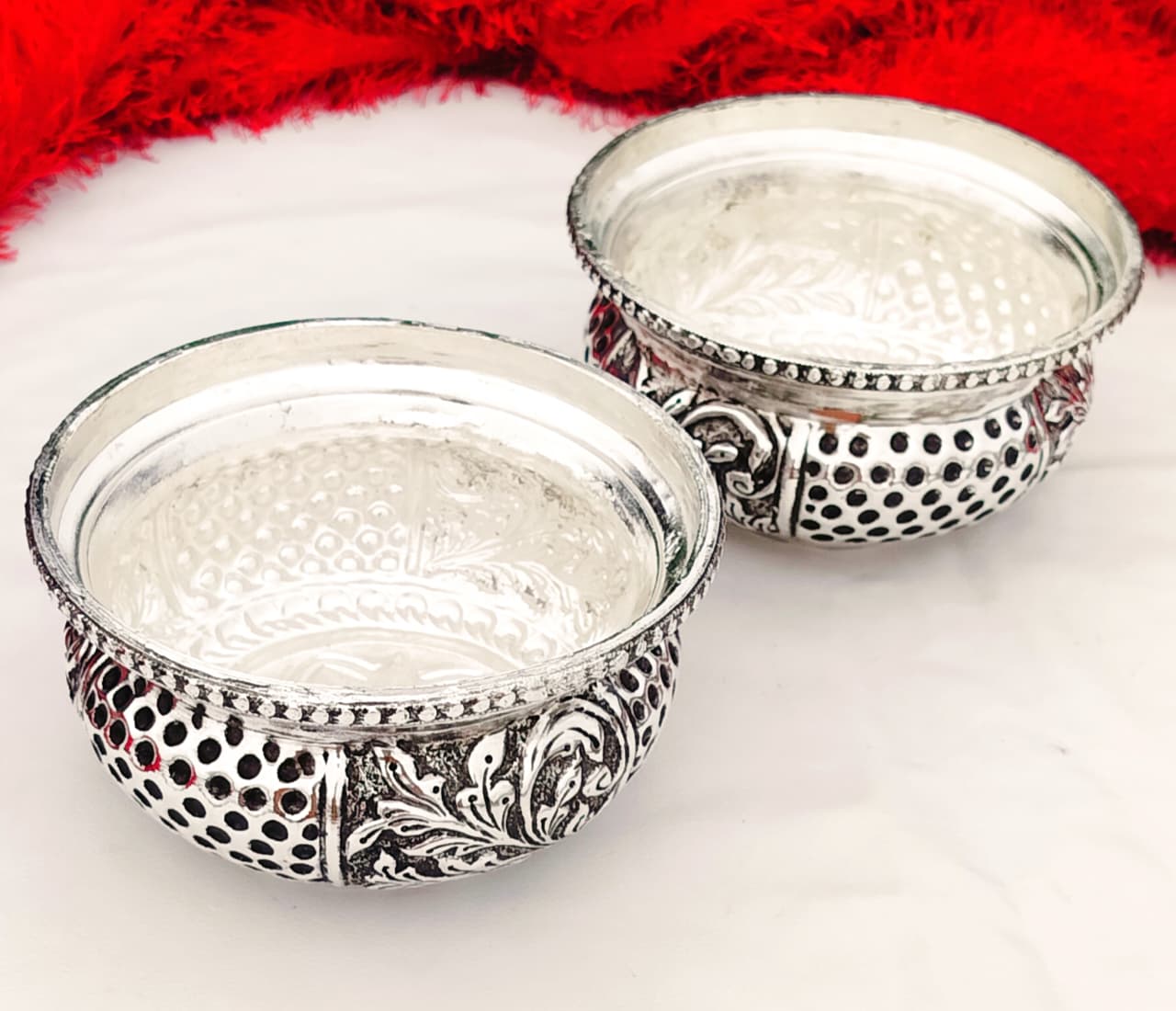 1. Pure silver antique finish Nakkashi work PRASADAM bowl / urli