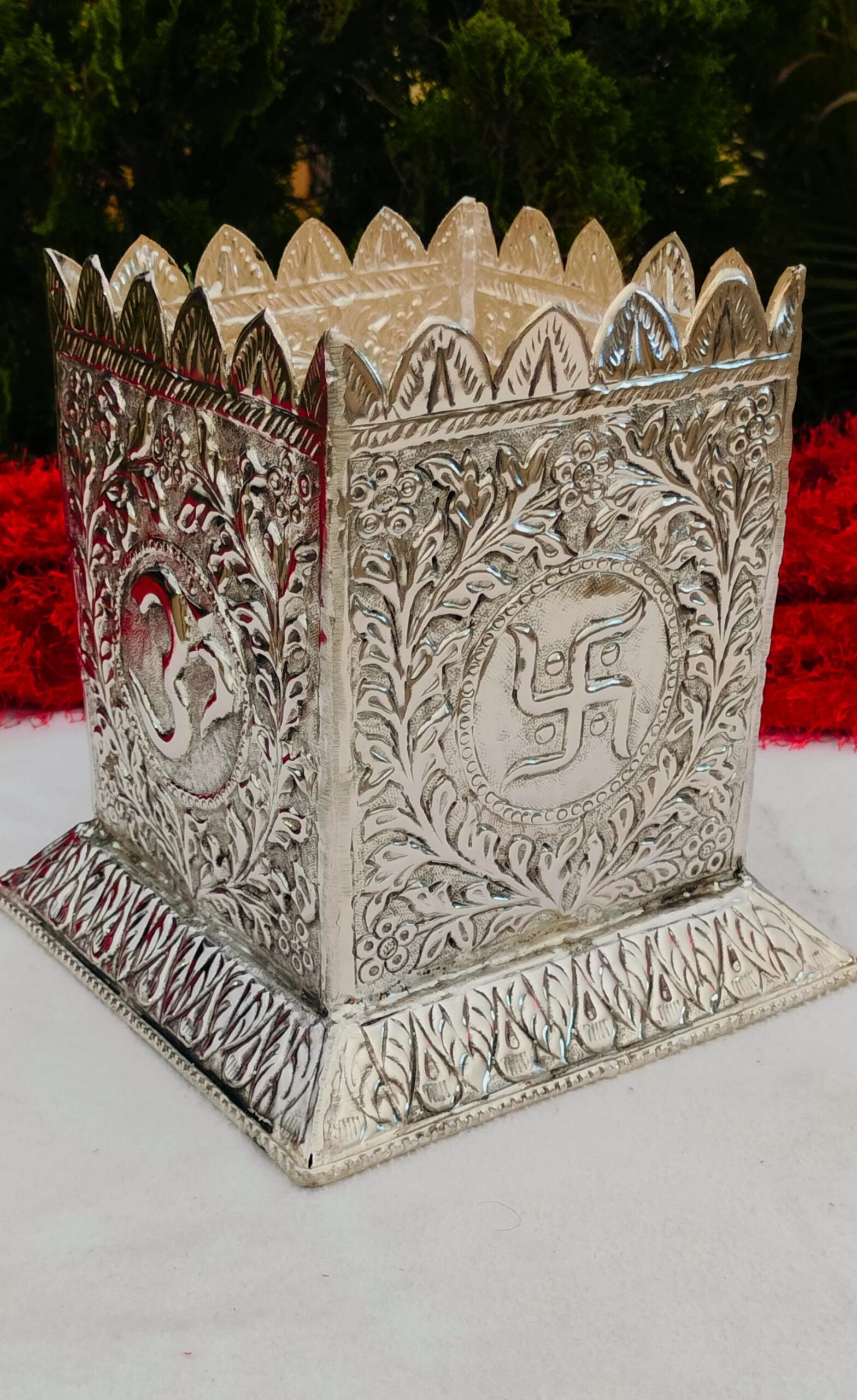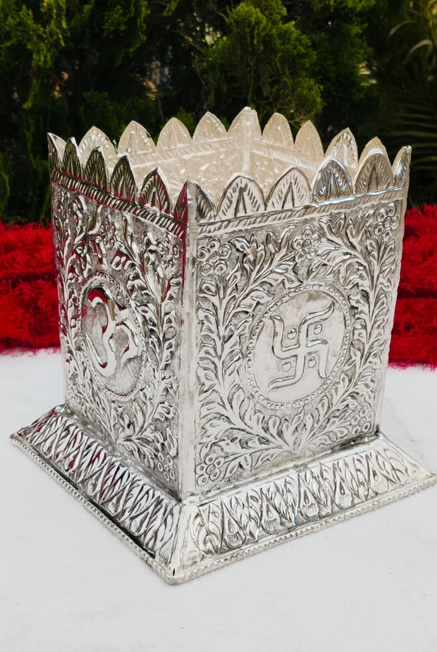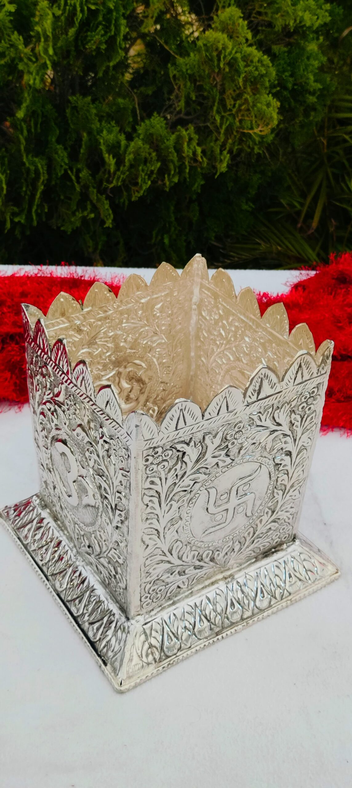1. Antique German silver Tulsi pot for Tulsi vrindavan
