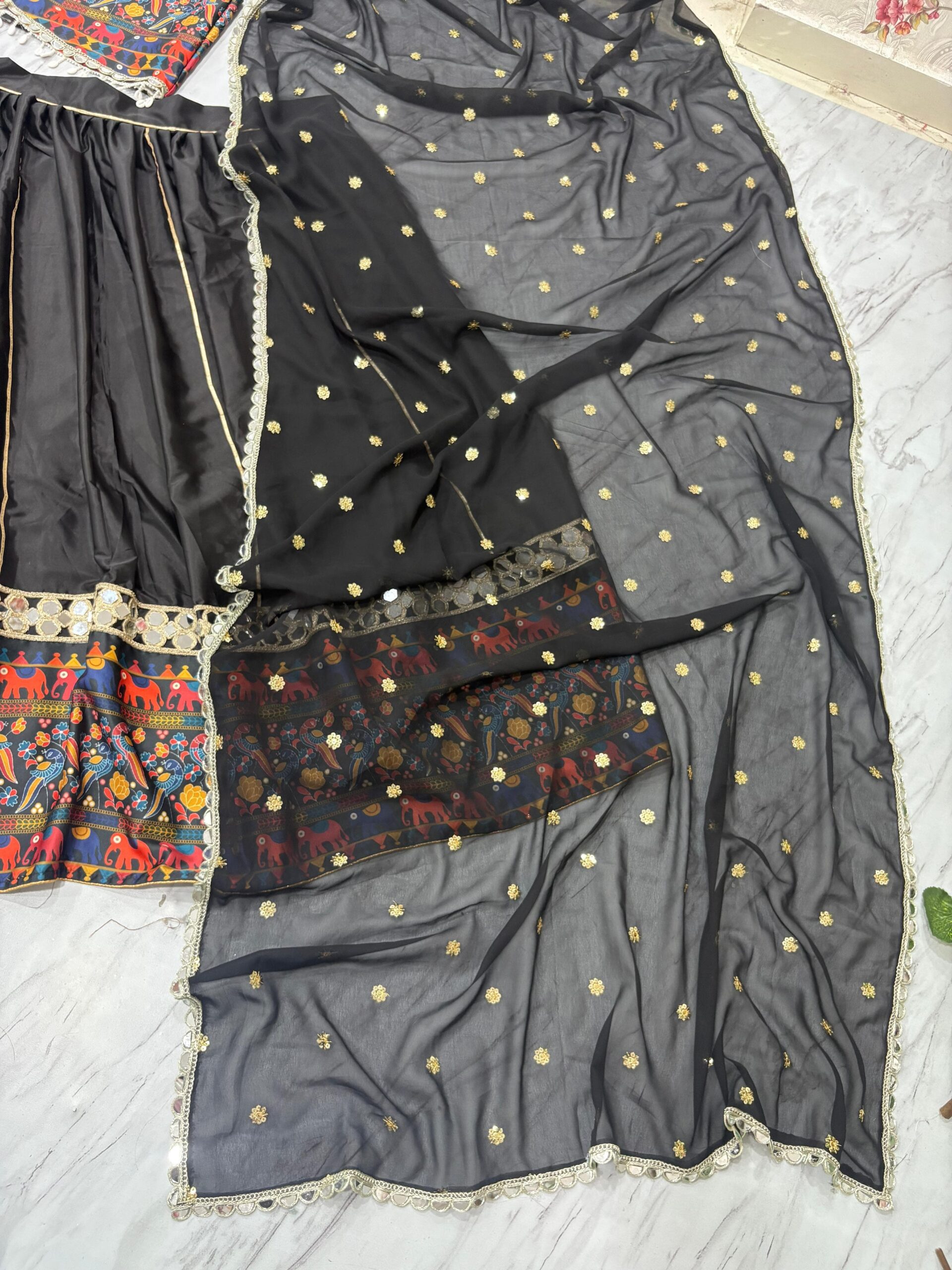 Dupatta: Premium Georgette Embellished With Beautiful Sequins Sequins Work With Beautiful Real Mirror Work Lace Border ( 2.5 MTR )