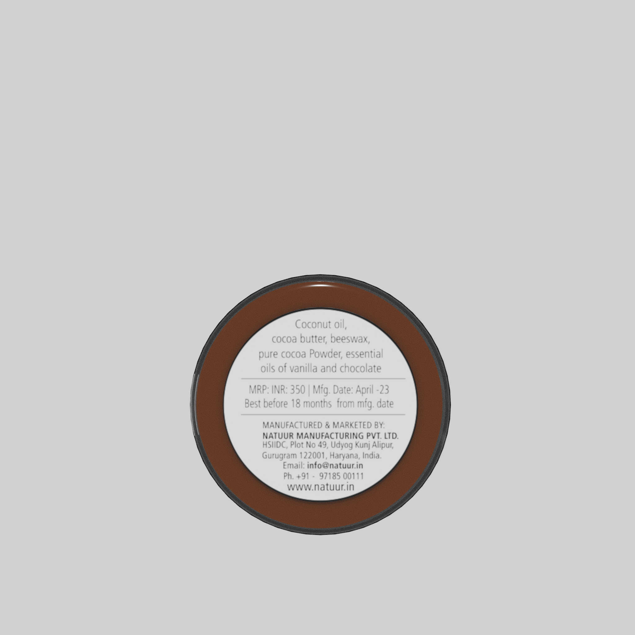 Introducing the Natuur Lip Balm in Chocolate flavor, a safe and pure way to moisturize and heal your chapped lips. Made with premium ingredients including coconut oil, cocoa butter, shea butter, beeswax, castor oil, pure cocoa powder, and cocoa beans infused oil, this lip balm is free of harmful chemicals and synthetic fragrances.