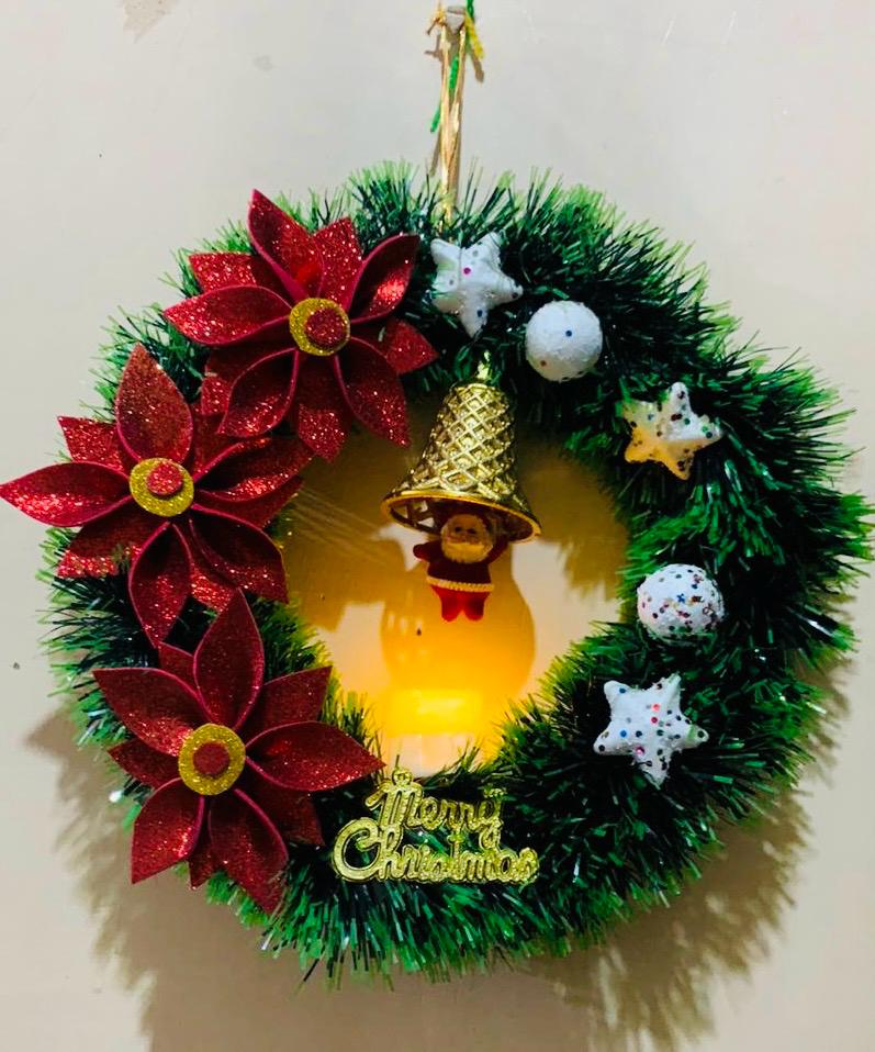 It gives a winter Christmas vibe and can be hanged anywhere. Beautiful glitter flowers and bells and snowflakes makes it more beautiful.