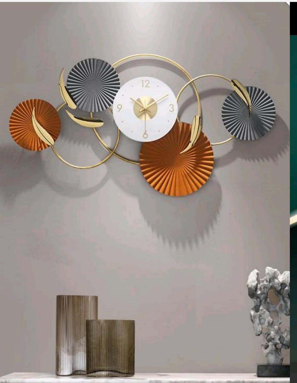 Circled Wall Decor with Wall Clock Gold Edge