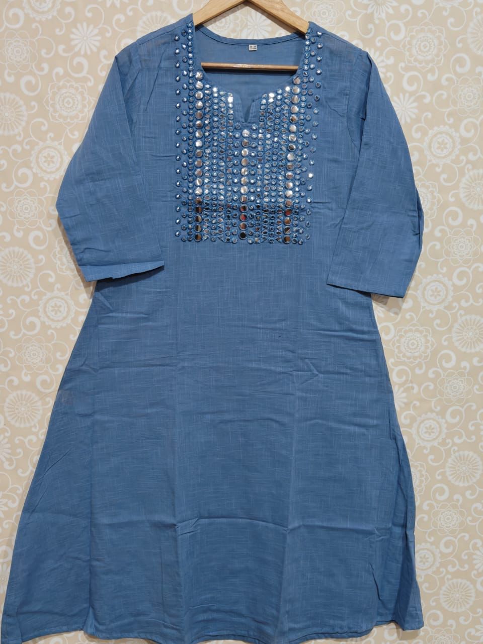 Work – Heavy mirror embroidery work on Kurti and hand work on kurti