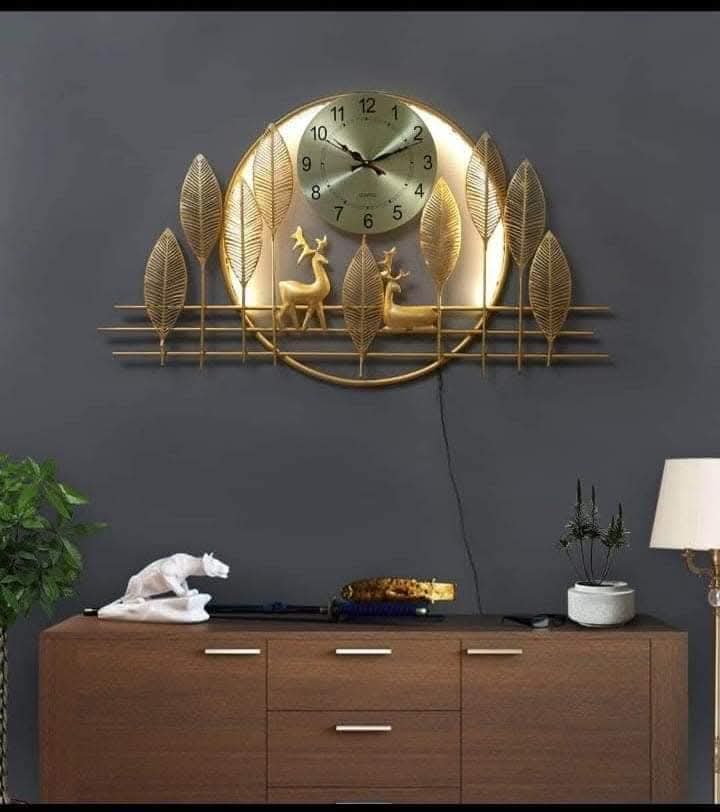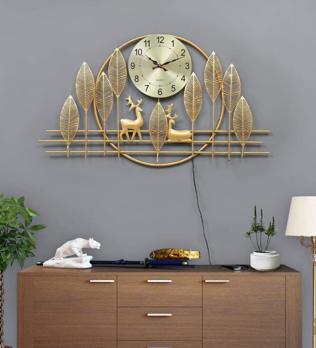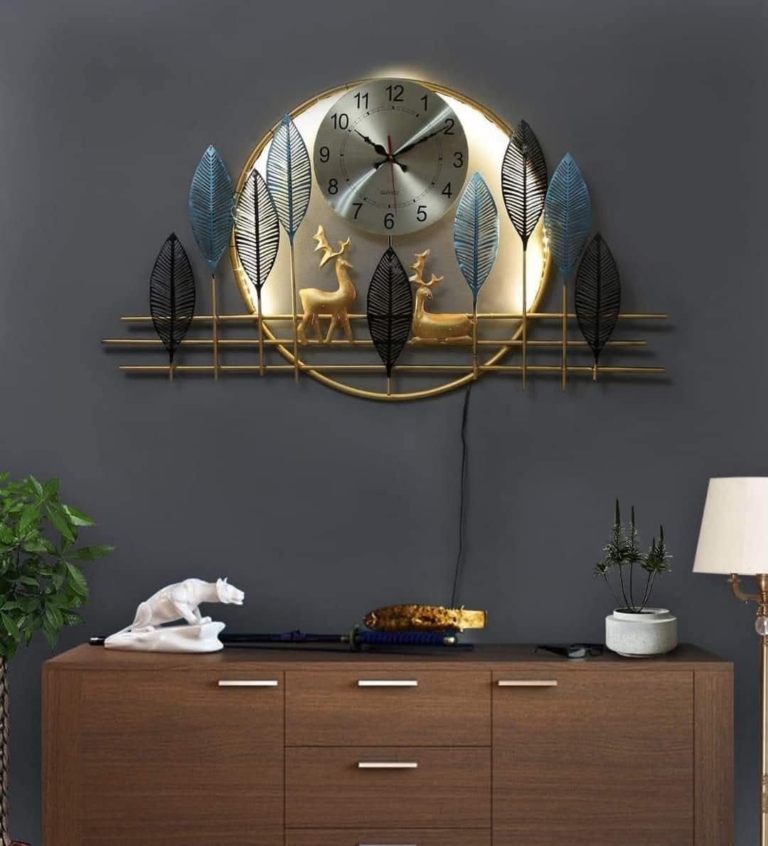 40*23 inches Deer leaf wall clock Available in Two colours with led light