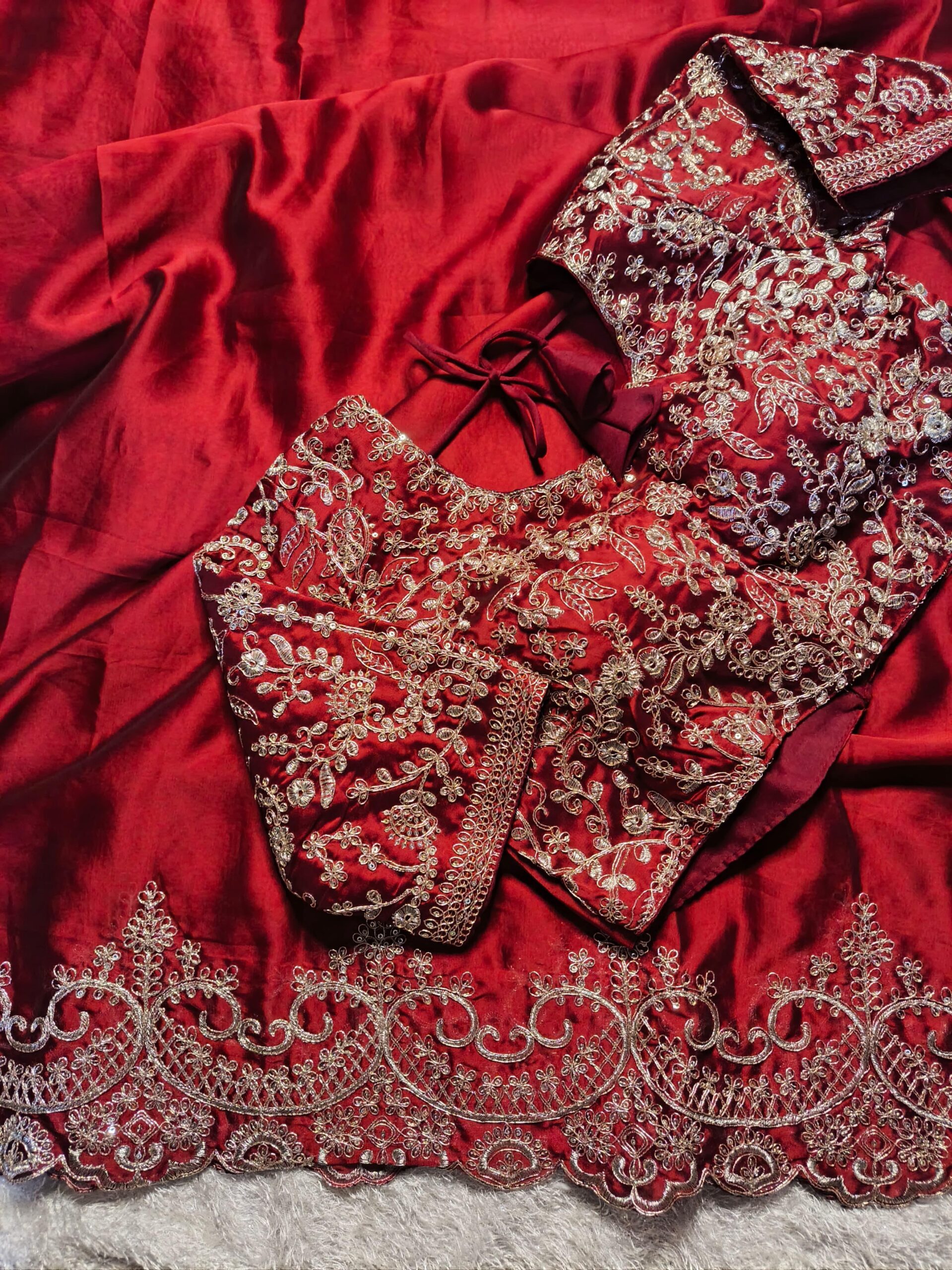 Make a glamorous statement with this stunning saree, inspired by the timeless elegance of Madhuri Dixit.