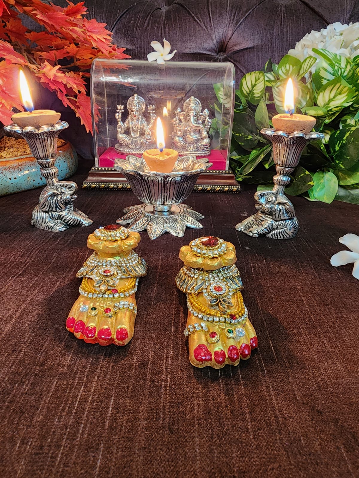 Elephant T-lights + Lotus Bowl cum T-Light + Charan