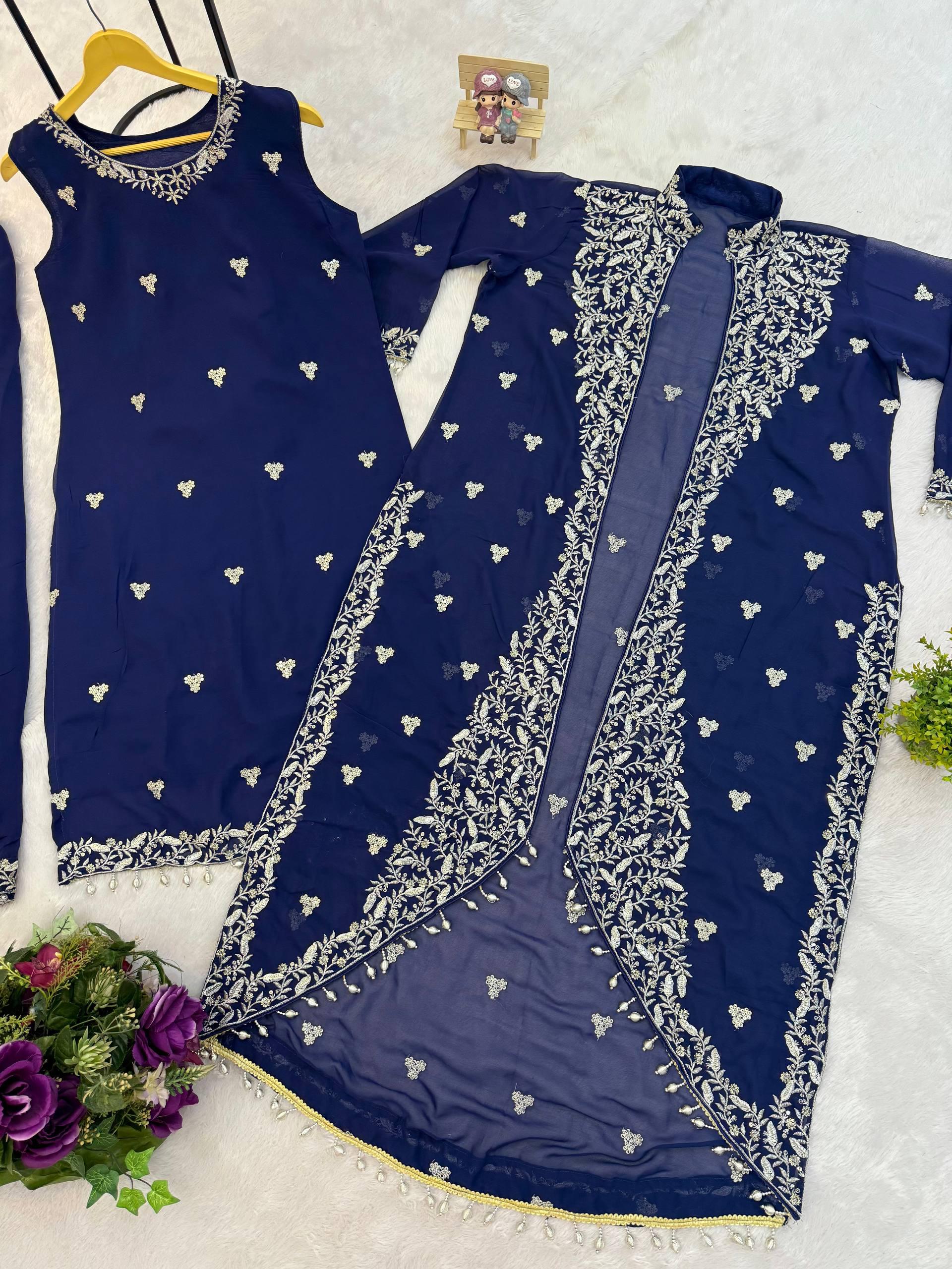 Work:- FRONT EMBROIDERY & FANCY LACE WORK