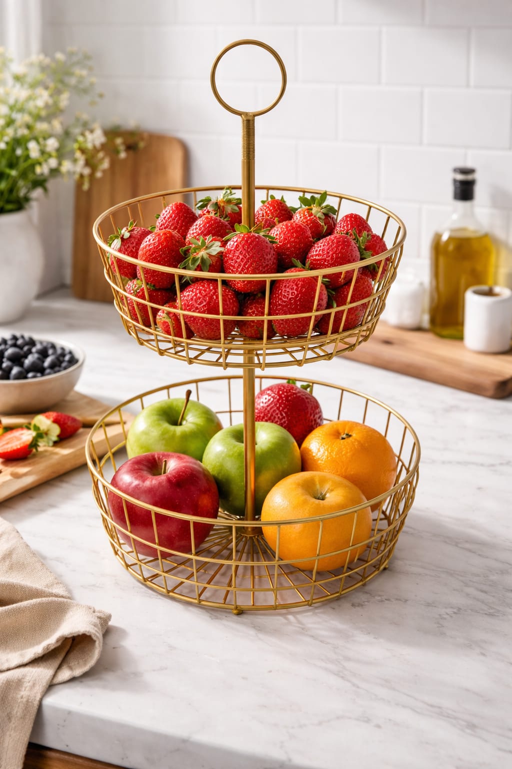 Foldable Vegetable/Fruit Basket Material : Iron with powder coating Color : Gold Size : 30x30x45 cm