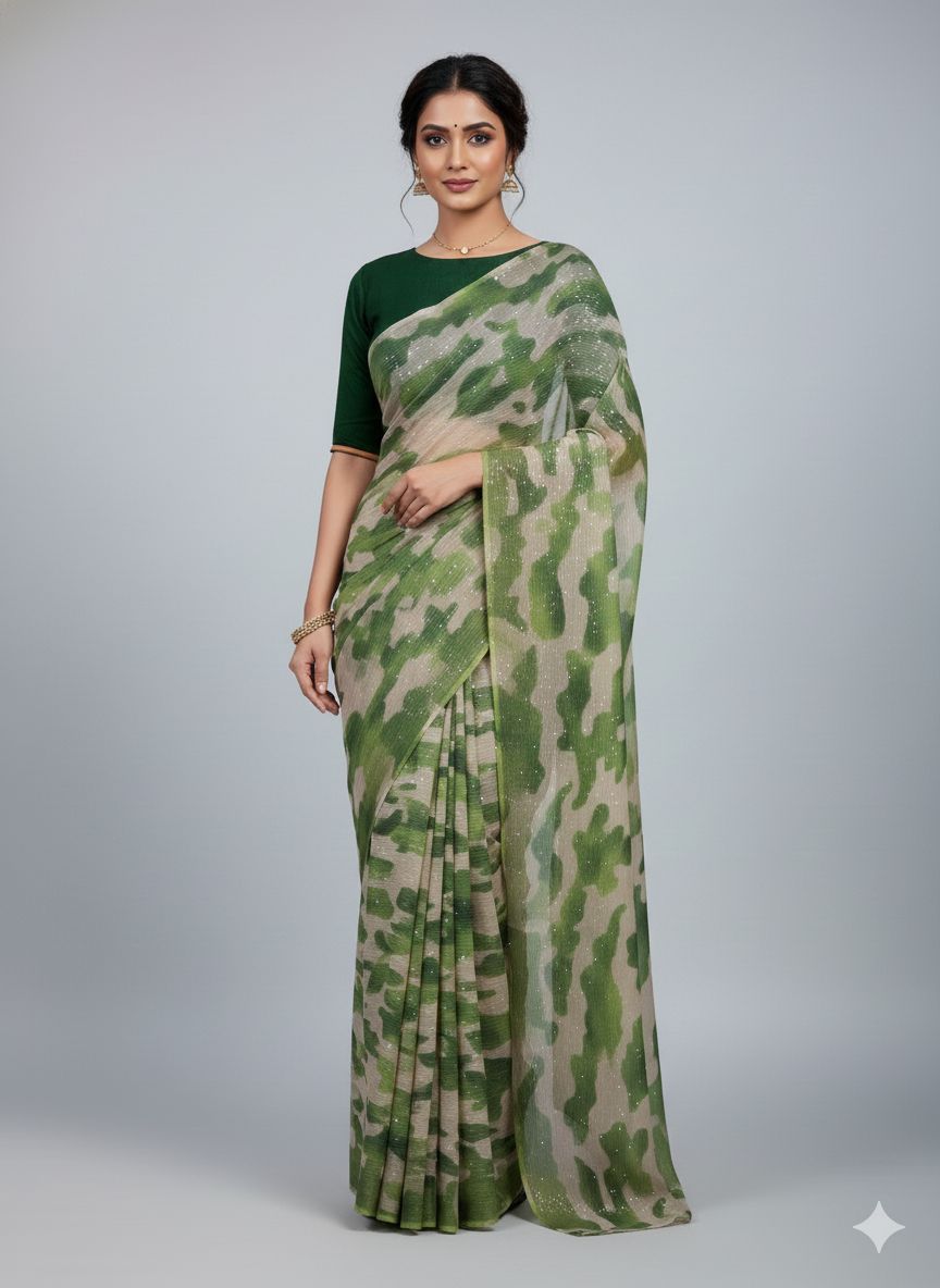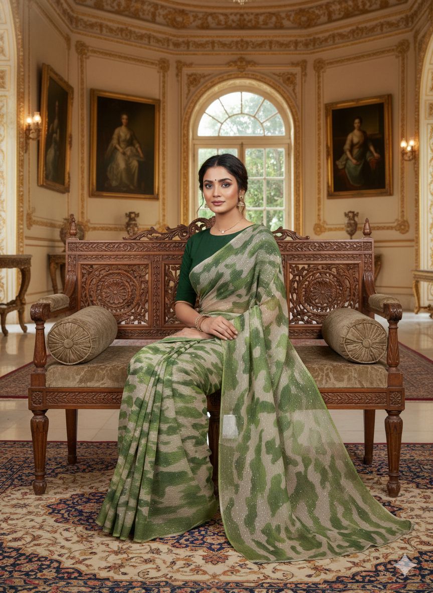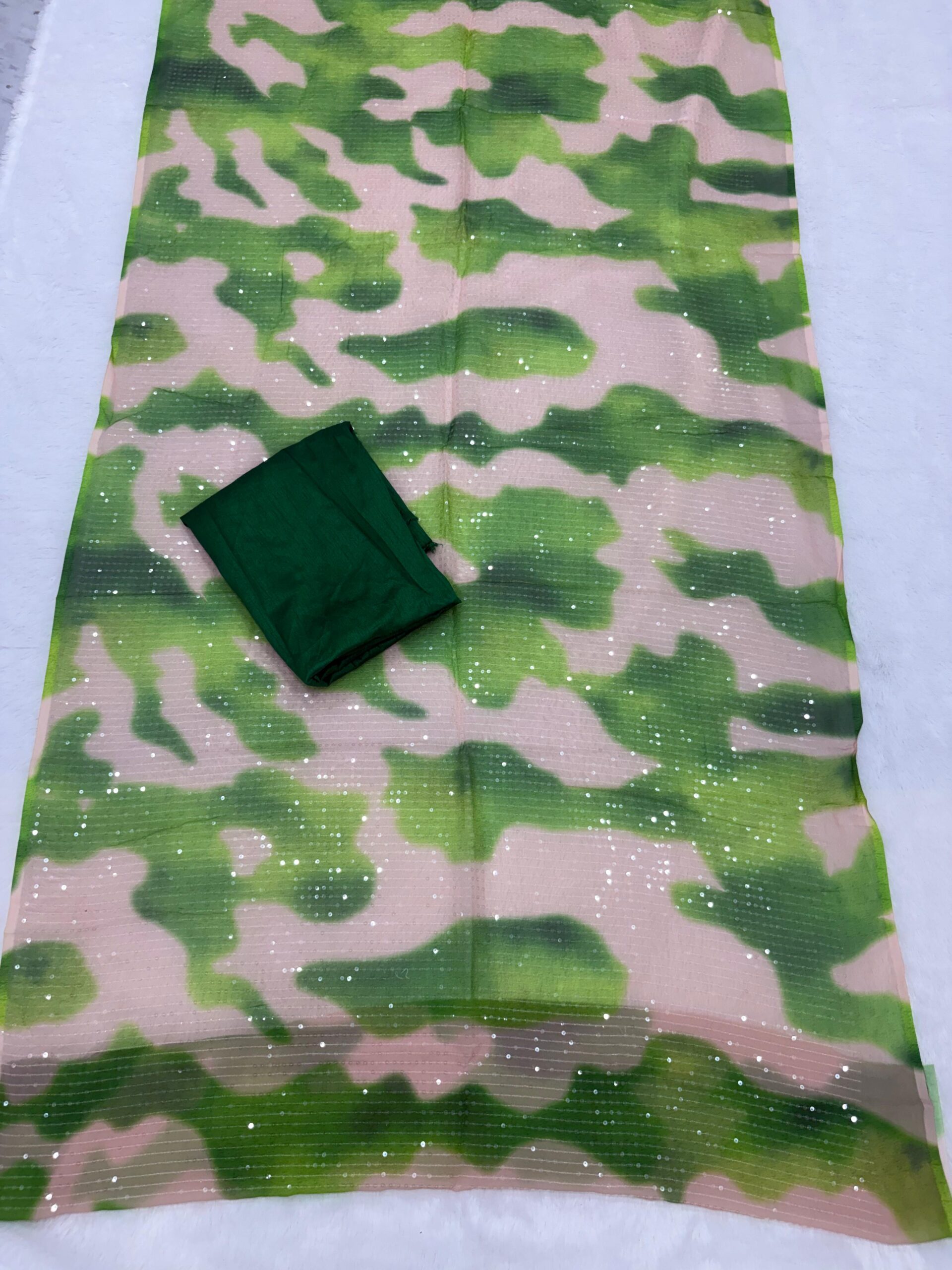 Saree : Premium Georgette Saree With Beautiful Digital Print And With Beautiful Heavy Sequins Work