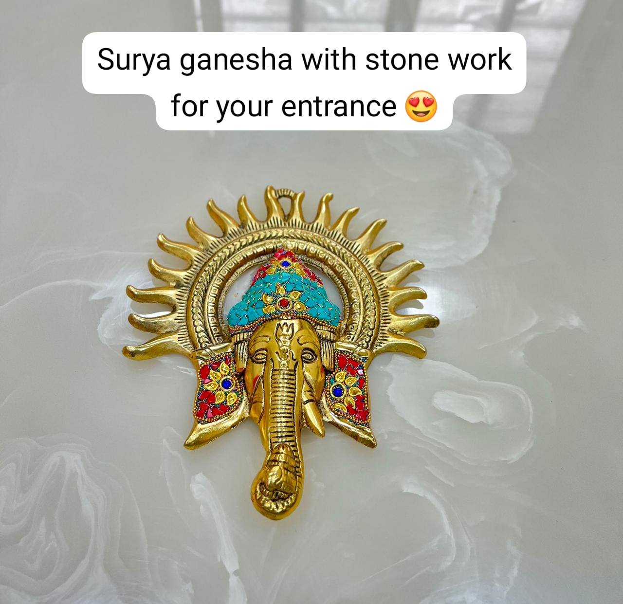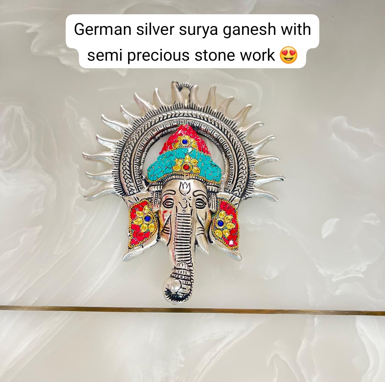 Exclusive new German silver surya ganesha with stone work for your entrance!!