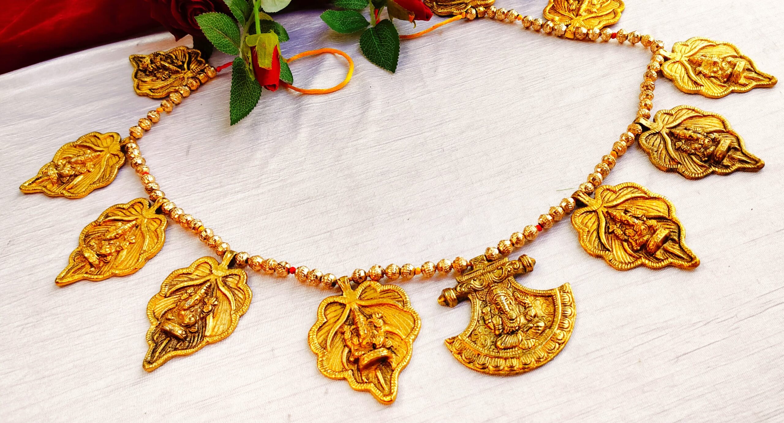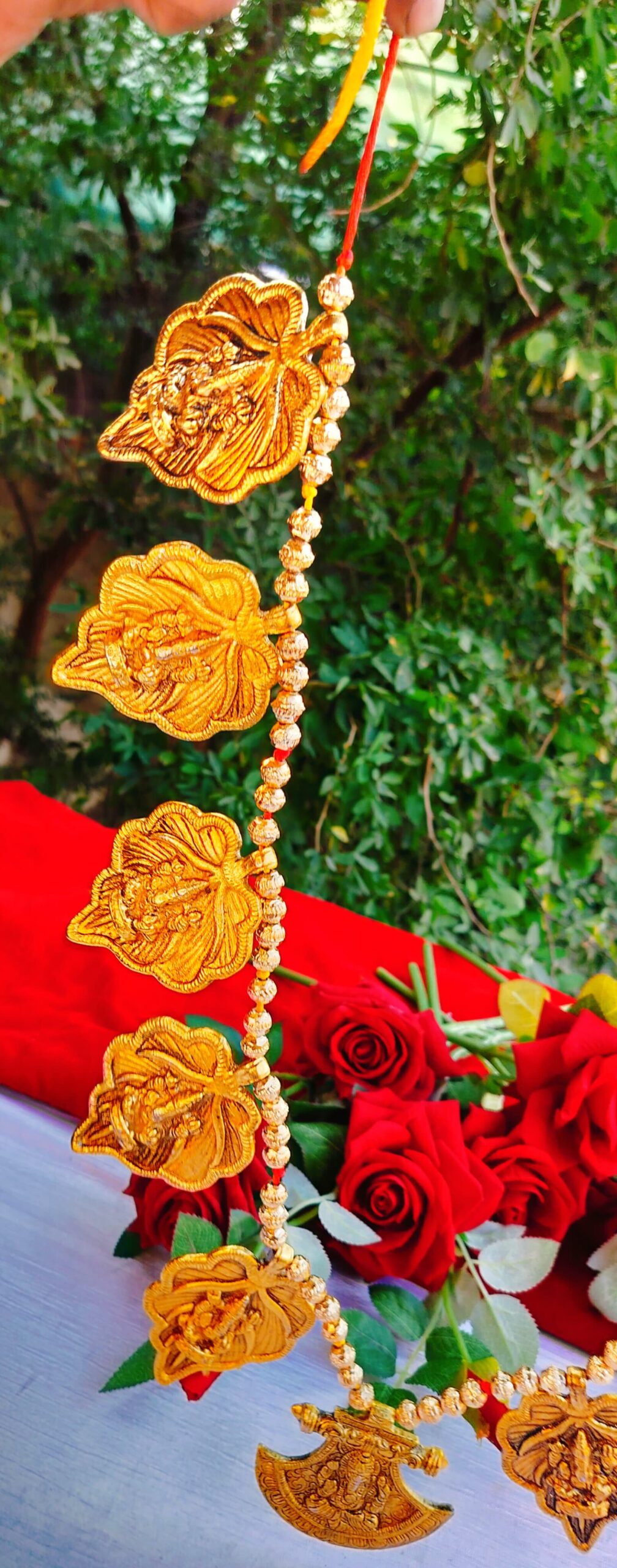 Gold plated antique mango 11 ganesh embossed betel leaf bandhanwar / toran