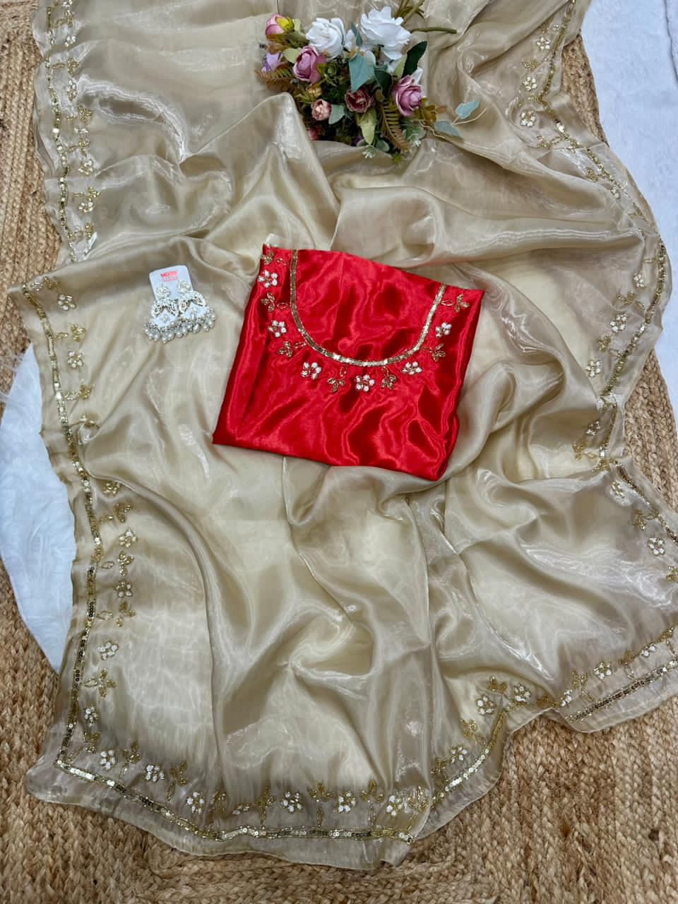 Satin Jimmychoo designer beautiful saree with designer valmoti handwork border and hand work beautiful blouse