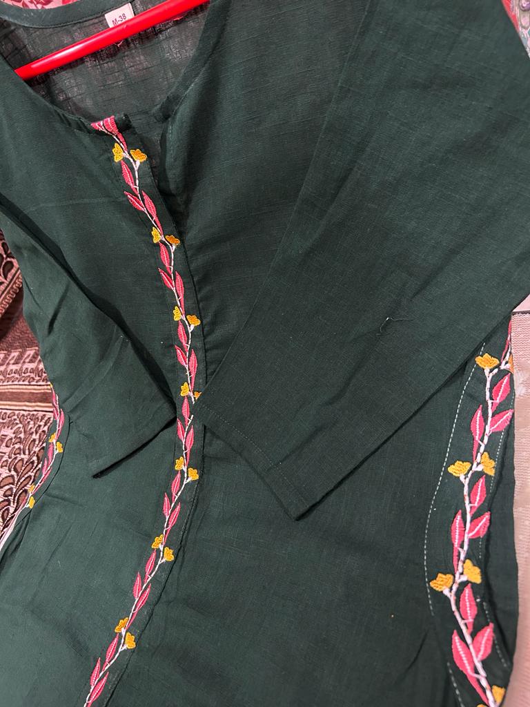 Handloom cotton slub fabric A-line kurta perfect for pear shape body. pocket with heavy thread embroidery work…
