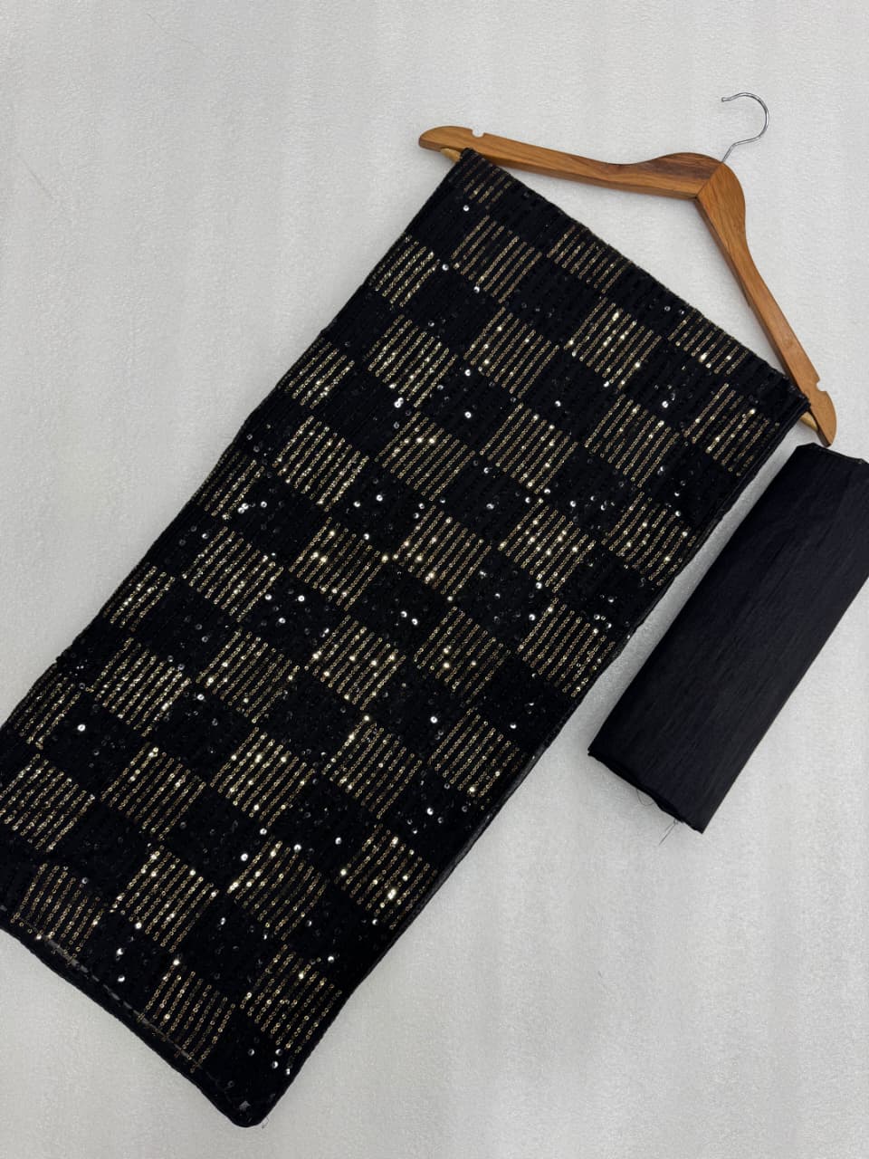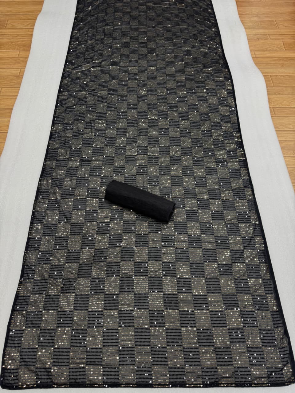 Heavy 3MM & 5MM Sequins Square Box Embroidery Work Done in Saree