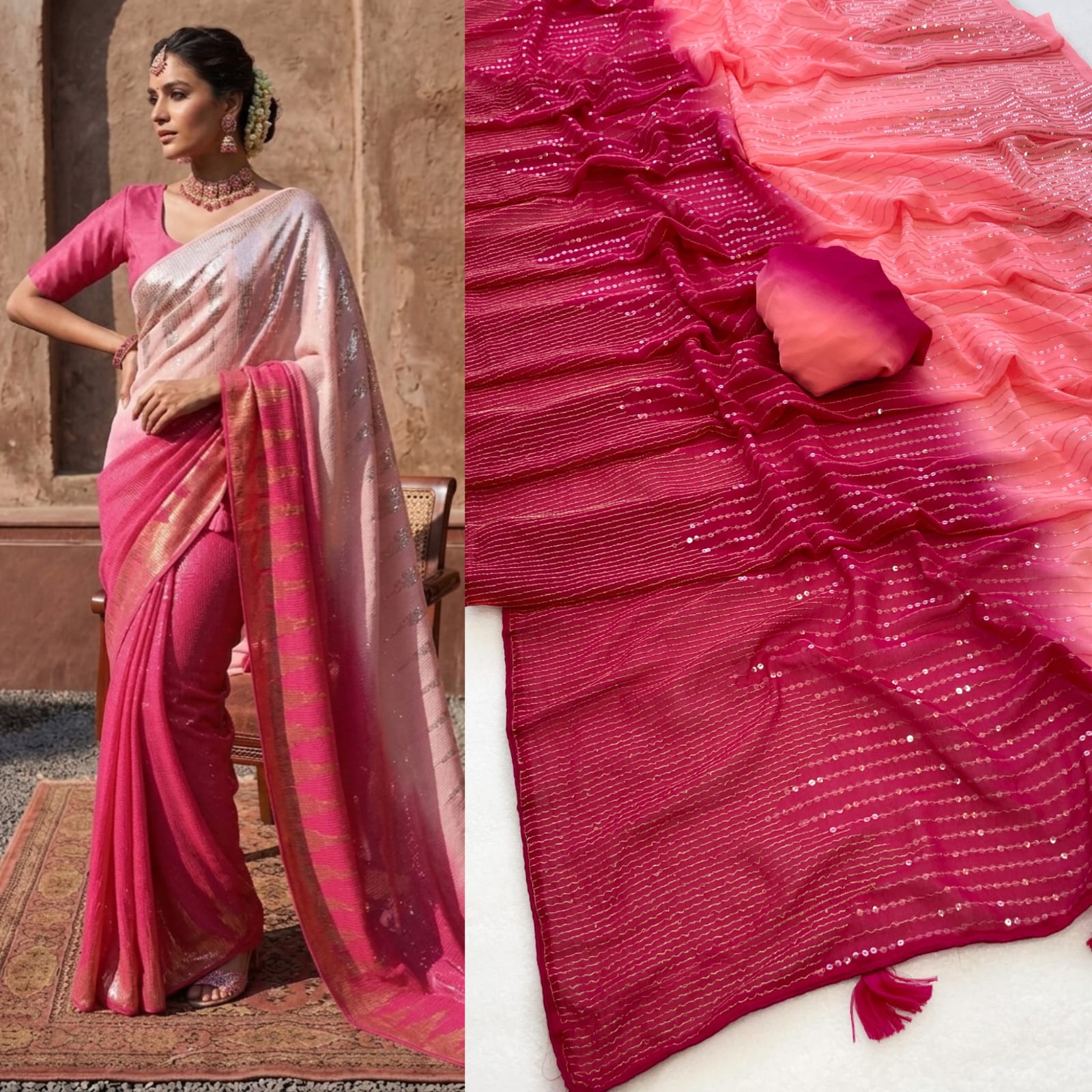 Heavy Faux Georgette Saree with PADDING