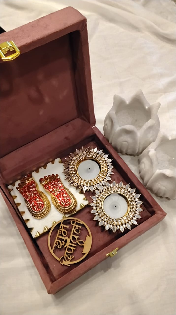 Laxmi Charan on marble Base with 2 diyas