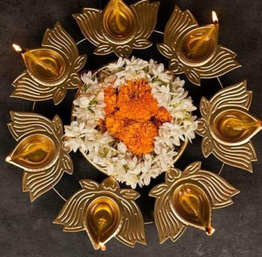 Light your devotion with nicely decorated lotus diya with urli