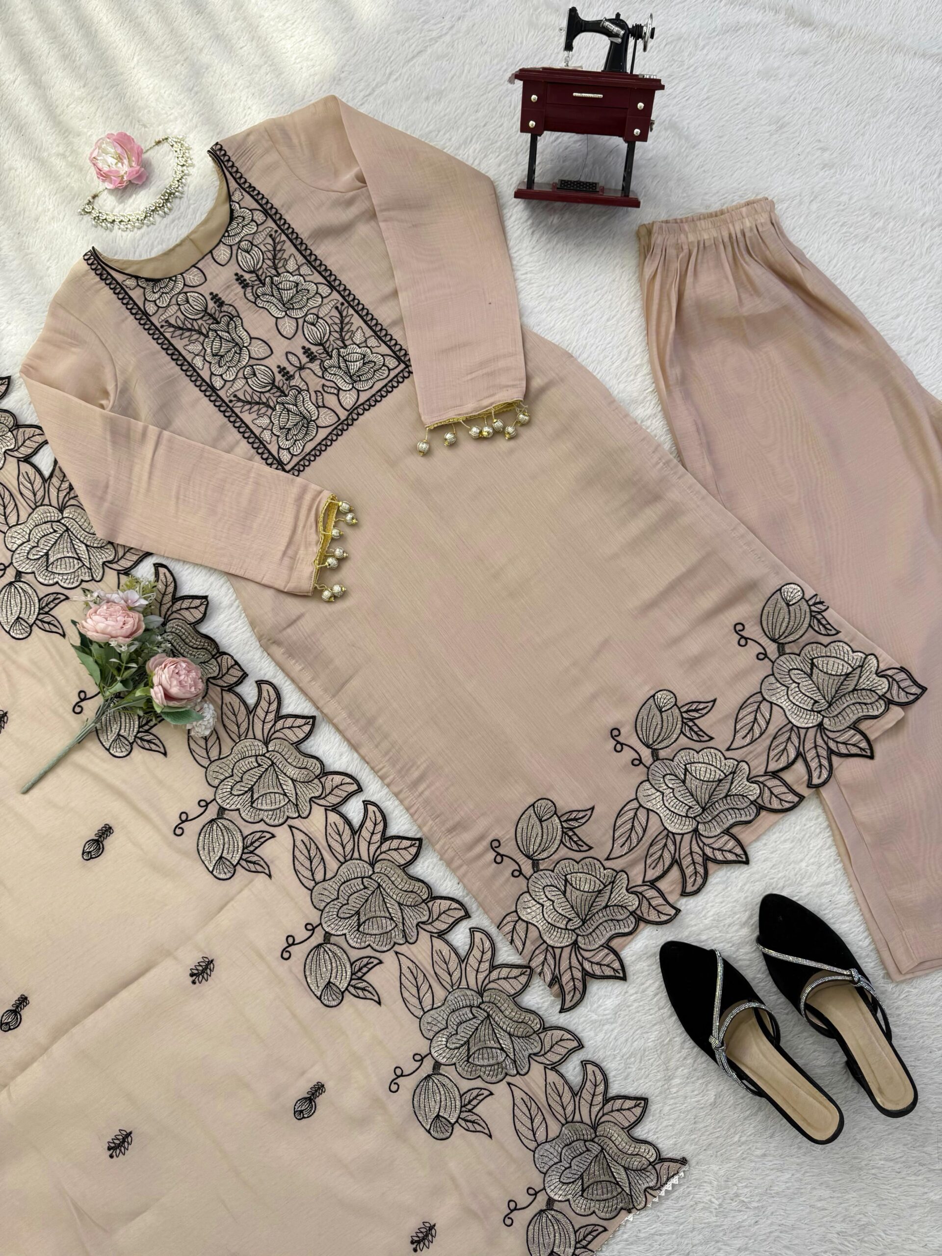•Work: Intricate Thread work With Fancy Lace
