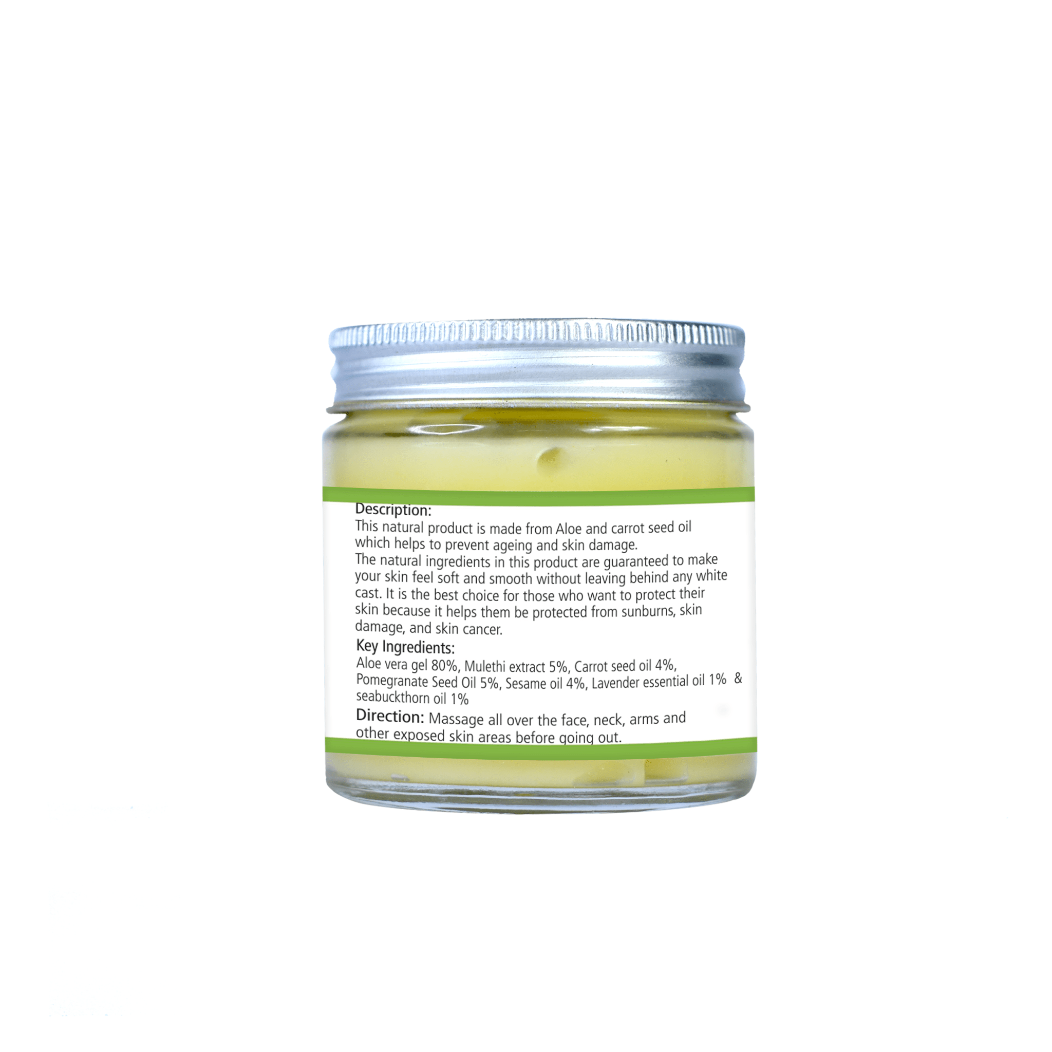 - NATUUR – Mild Sunscreen Aloe Carrot Pomegranate SPF 20 offers natural and safe protection against harmful UV rays without the use of harsh chemicals.