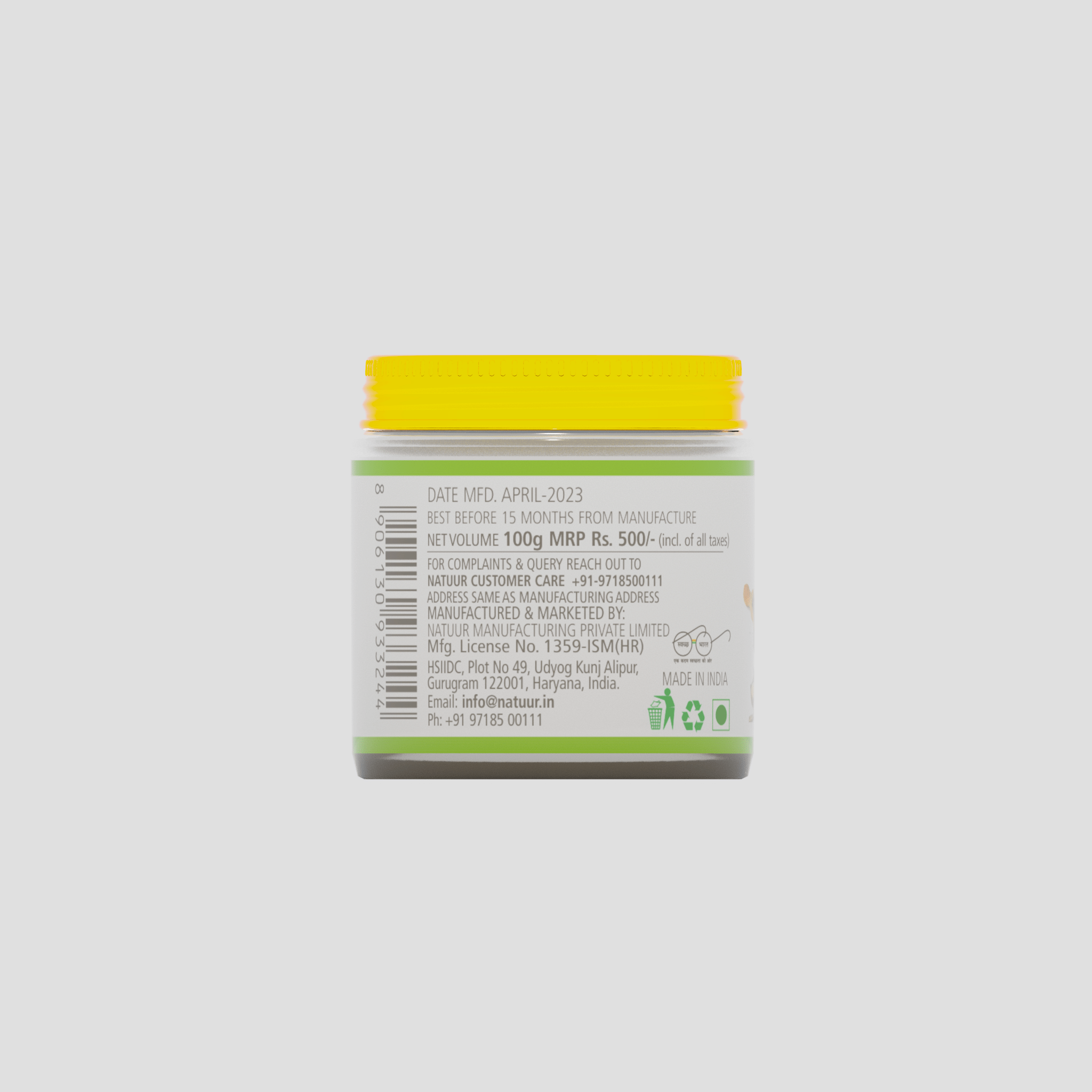 To use, take a teaspoon of the powder blend and mix it with Natuur activation liquid or raw milk/curd of your choice, until you get the desired consistency. Apply the paste all over your face and neck areas, leave it on until it dries, and then wash off with lukewarm water. Follow up with a toner and moisturizer of your choice for best results.