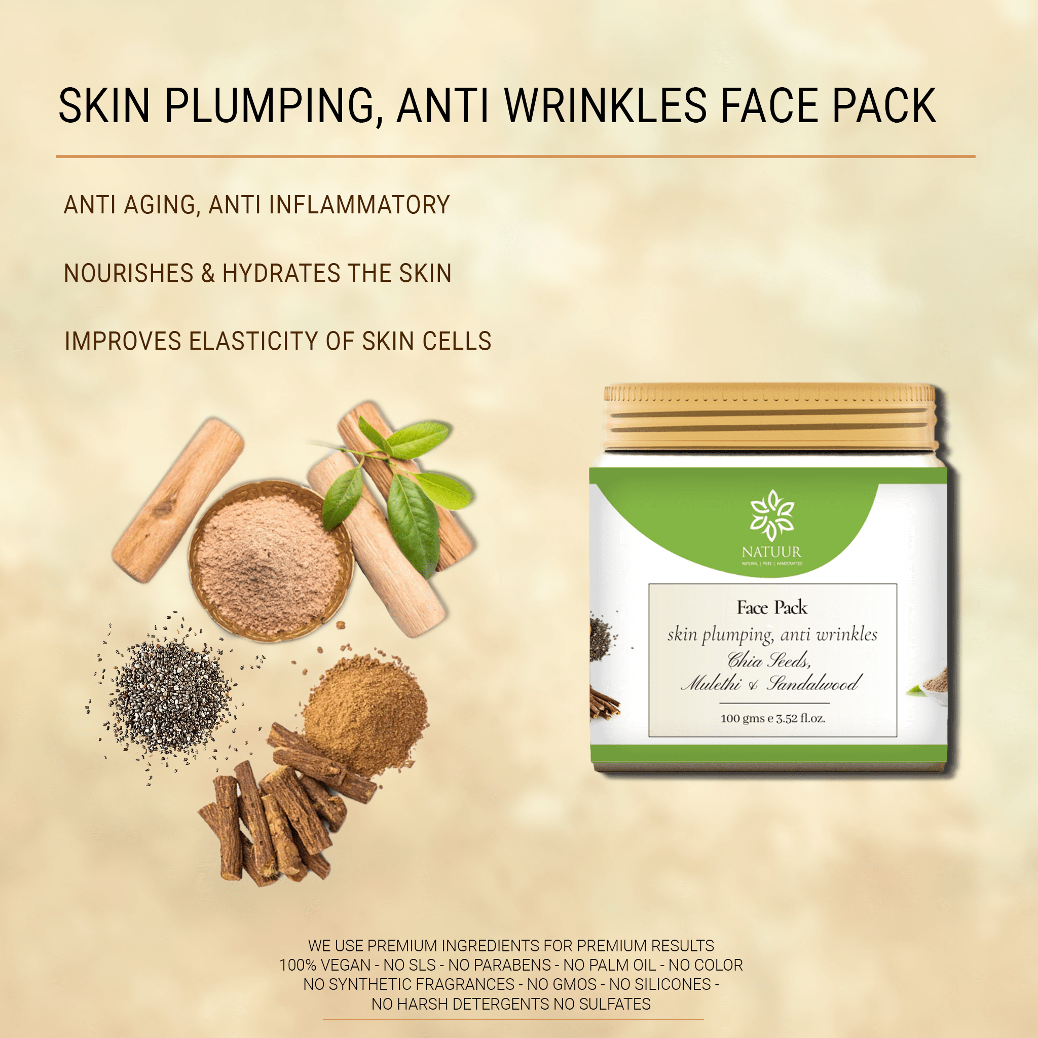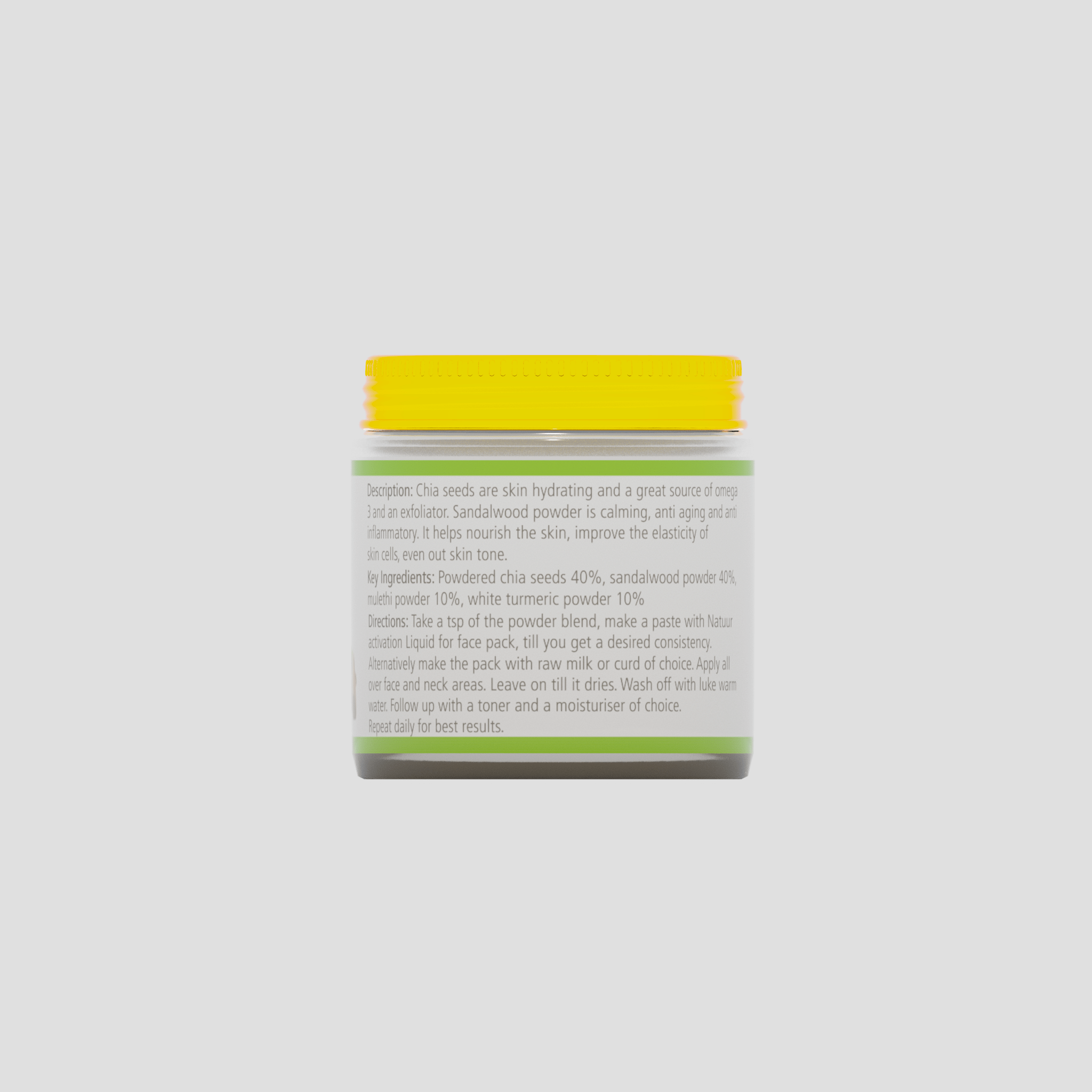 - Natuur Face Pack is a natural blend of powdered chia seeds, sandalwood, mulethi, and turmeric powders to provide plump, youthful-looking skin.
