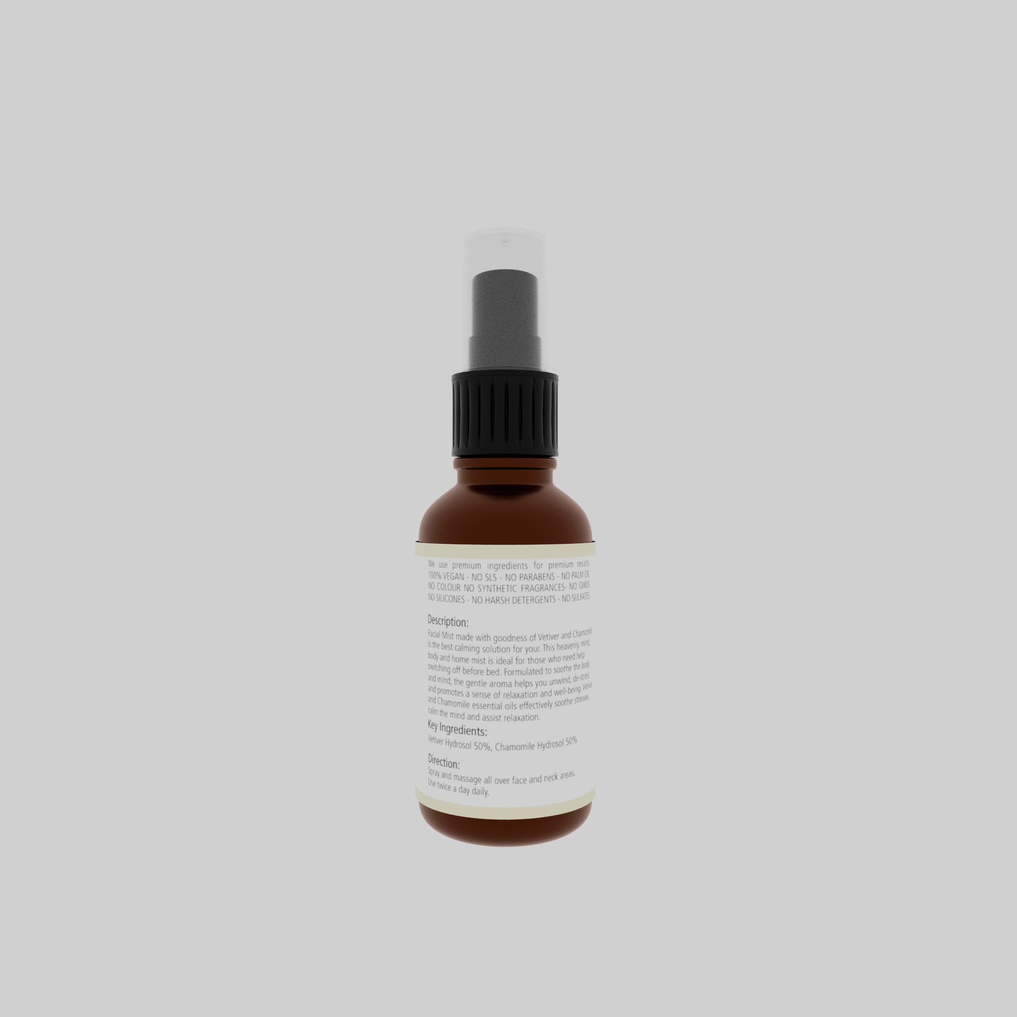 Introducing Natuur’s Facial Mist Vetiver and Chamomile, the perfect calming solution for your skin. This facial mist is made with a blend of Vetiver and Chamomile hydrosols, known for their soothing and relaxing properties. This organic formula effectively reduces anxiety, instills mental clarity, and promotes relaxation and well-being. Vetiver and Chamomile essential oils effectively calm the mind and soothe stresses.