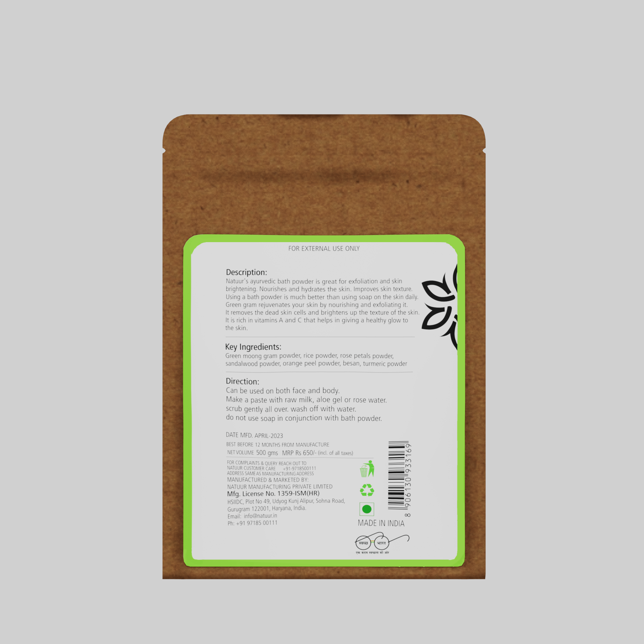 - Natuur’s ayurvedic bath powder with green gram and rose deeply nourishes and hydrates your skin, brightening your complexion with regular use.