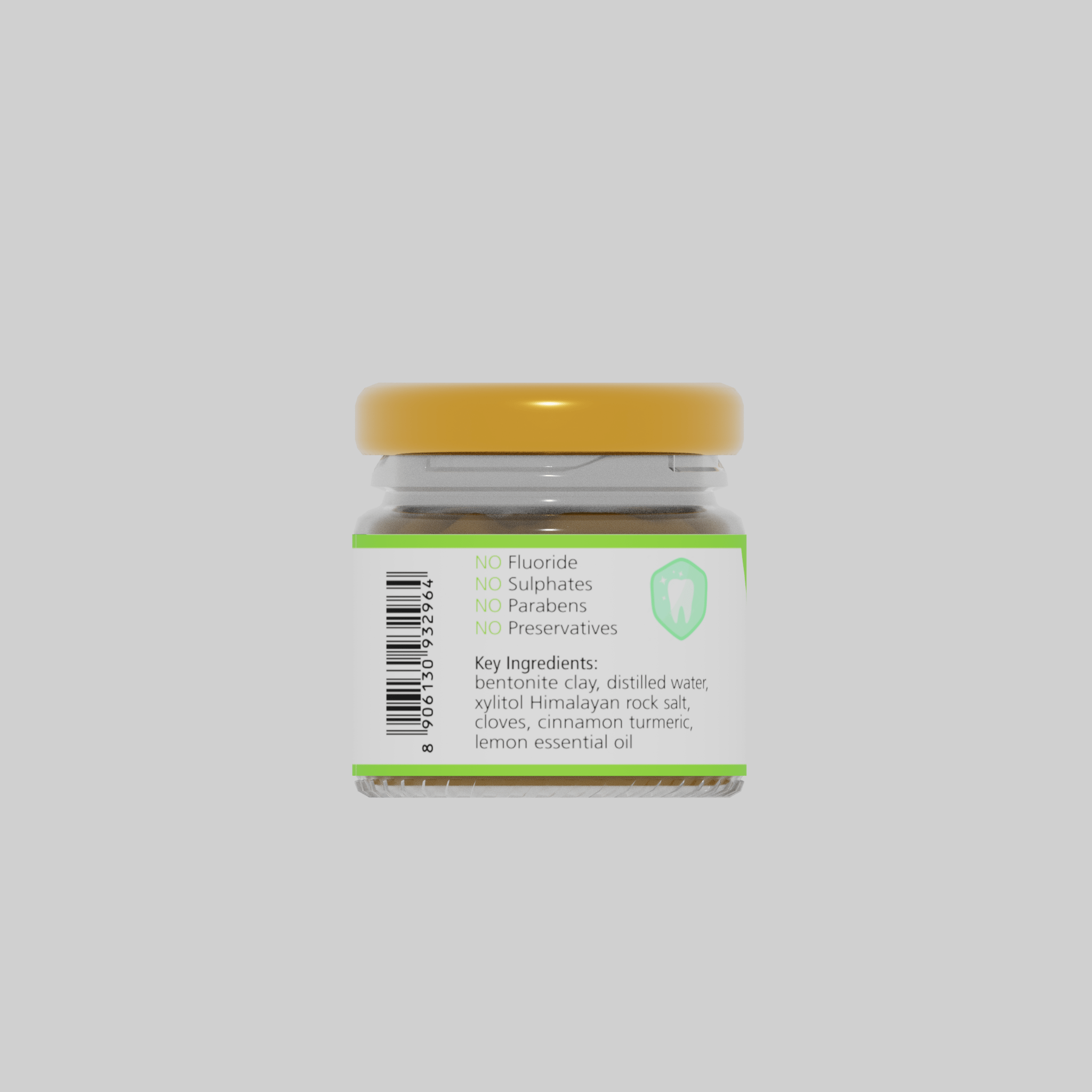 Our toothpaste is made with premium, vegan-friendly ingredients, including bentonite clay, distilled water, xylitol, Himalayan rock salt, cloves, cinnamon, turmeric, and lemon essential oil. This toothpaste is free from SLS, parabens, palm oil, synthetic fragrances, GMOs, silicones, harsh detergents, and sulfates, making it gentle and safe for all skin types.