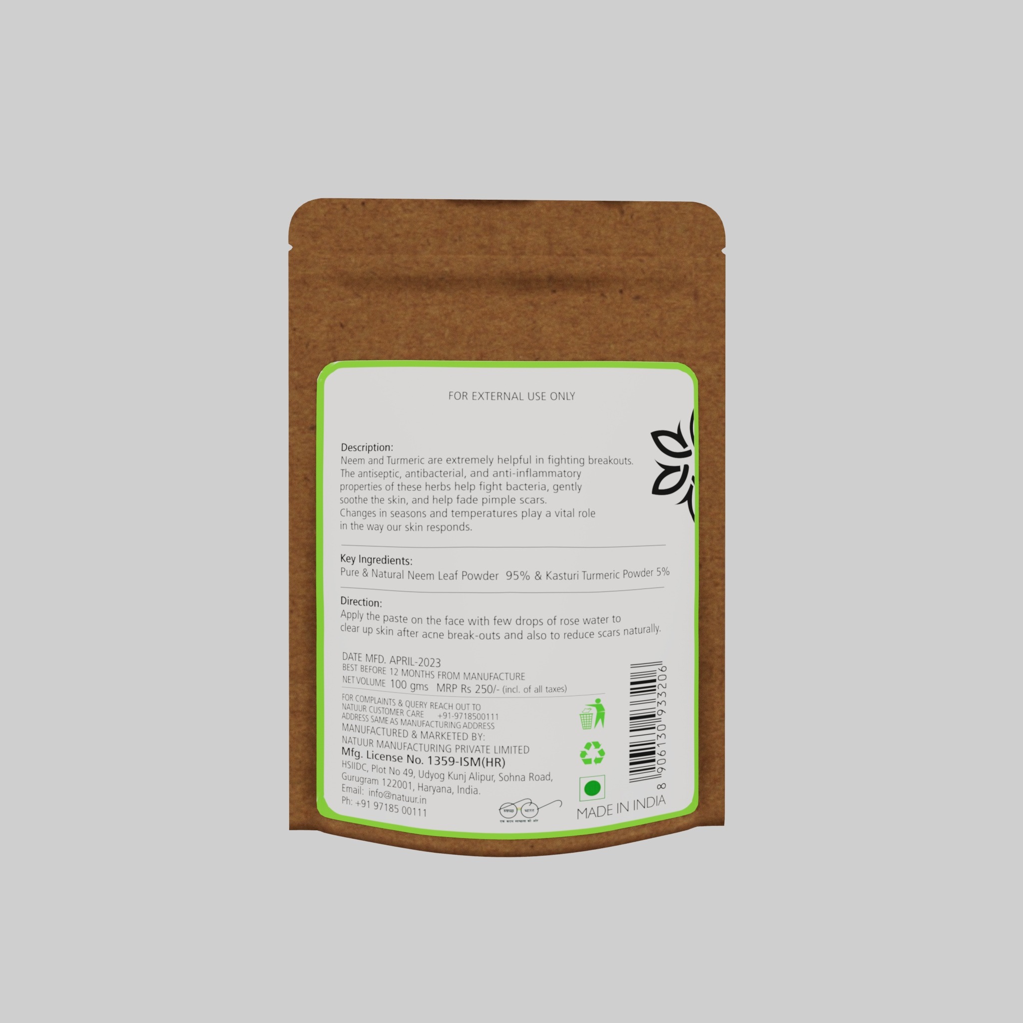 - Available in 50g and 100g sizes, packaged in smaller pouches for your convenience. Achieve naturally clear and radiant skin with our Neem Haldi Pack.