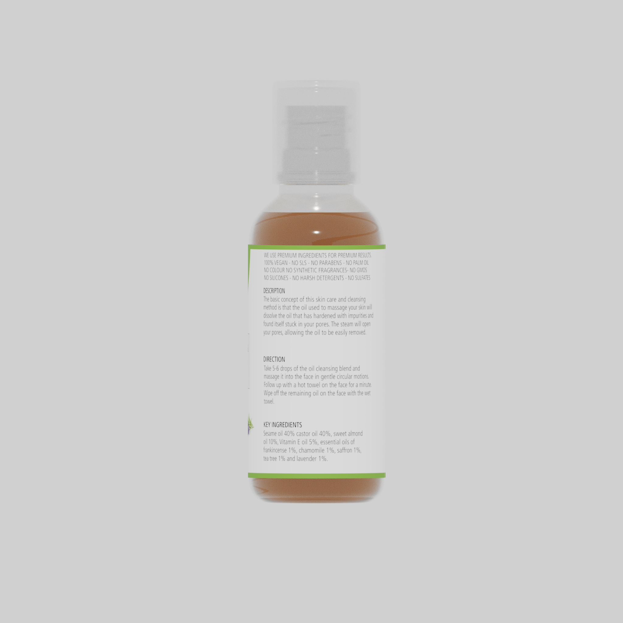 Introducing Natuur Oil Cleansing Blend, infused with the goodness of tea tree and lavender essential oils. This oil cleansing blend is carefully crafted with pure white sesame oil, castor oil, sweet almond oil, , and a blend of essential oils, including frankincense, chamomile, saffron, tea tree, and lavender.