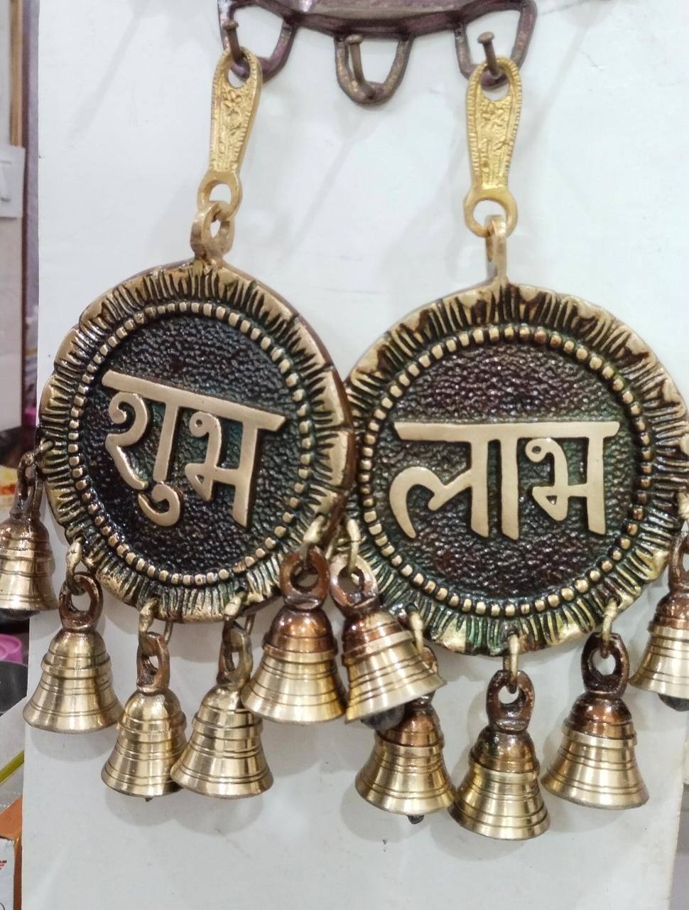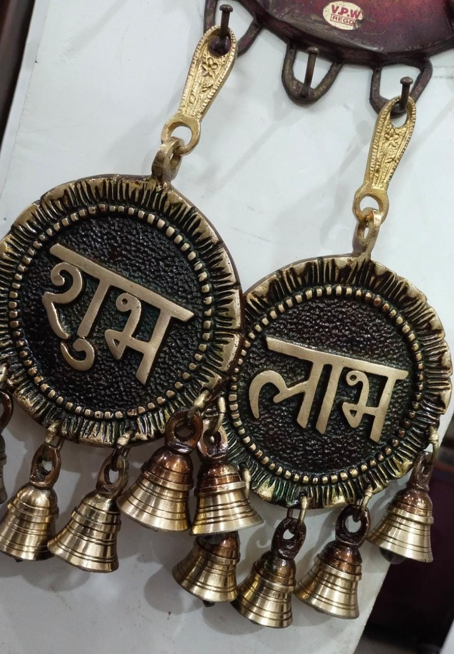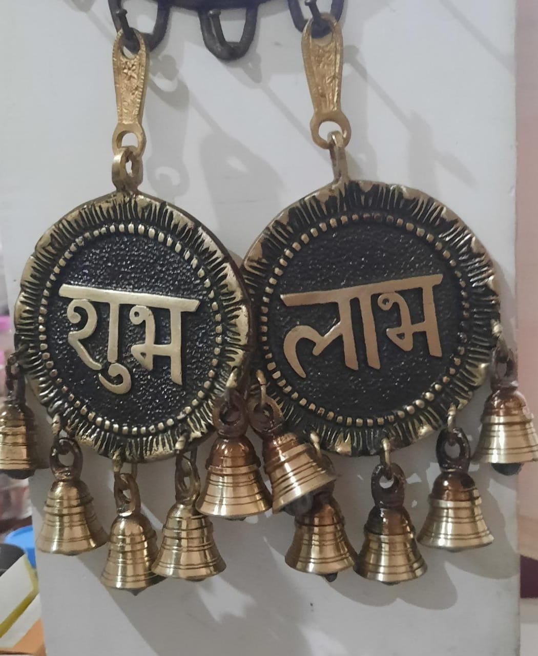 Pair of hanging shubh laabh for Diwali decor with bells