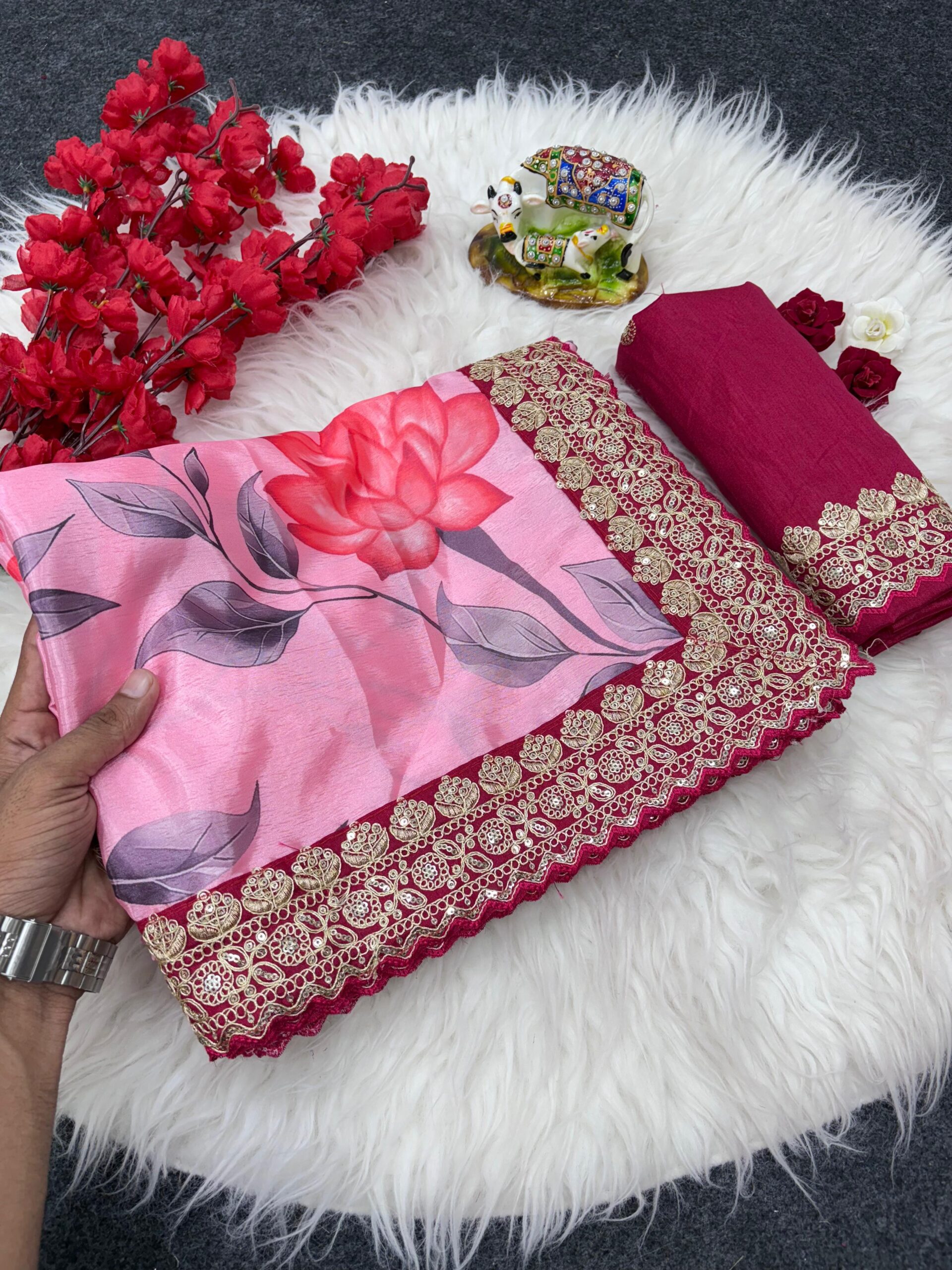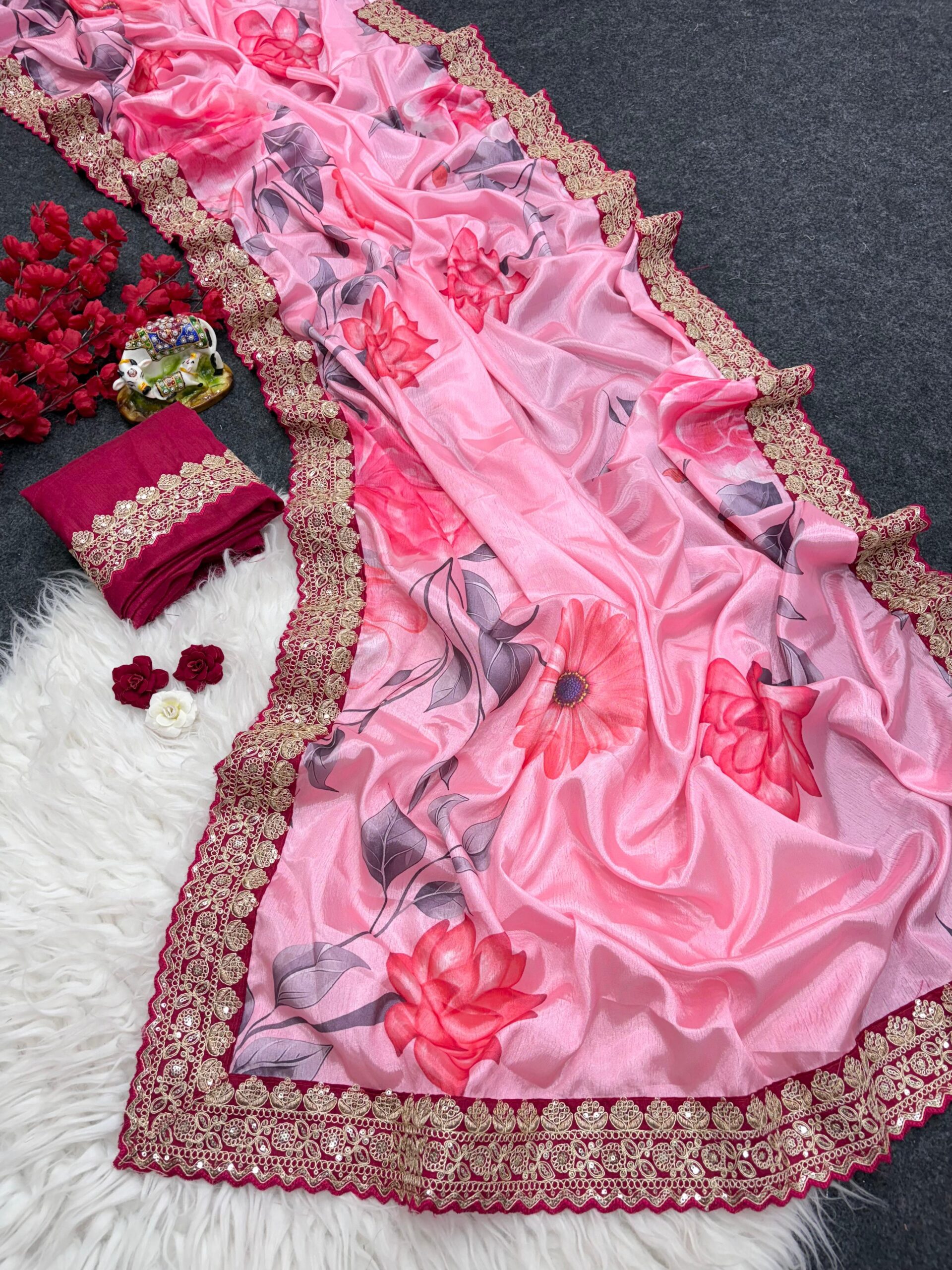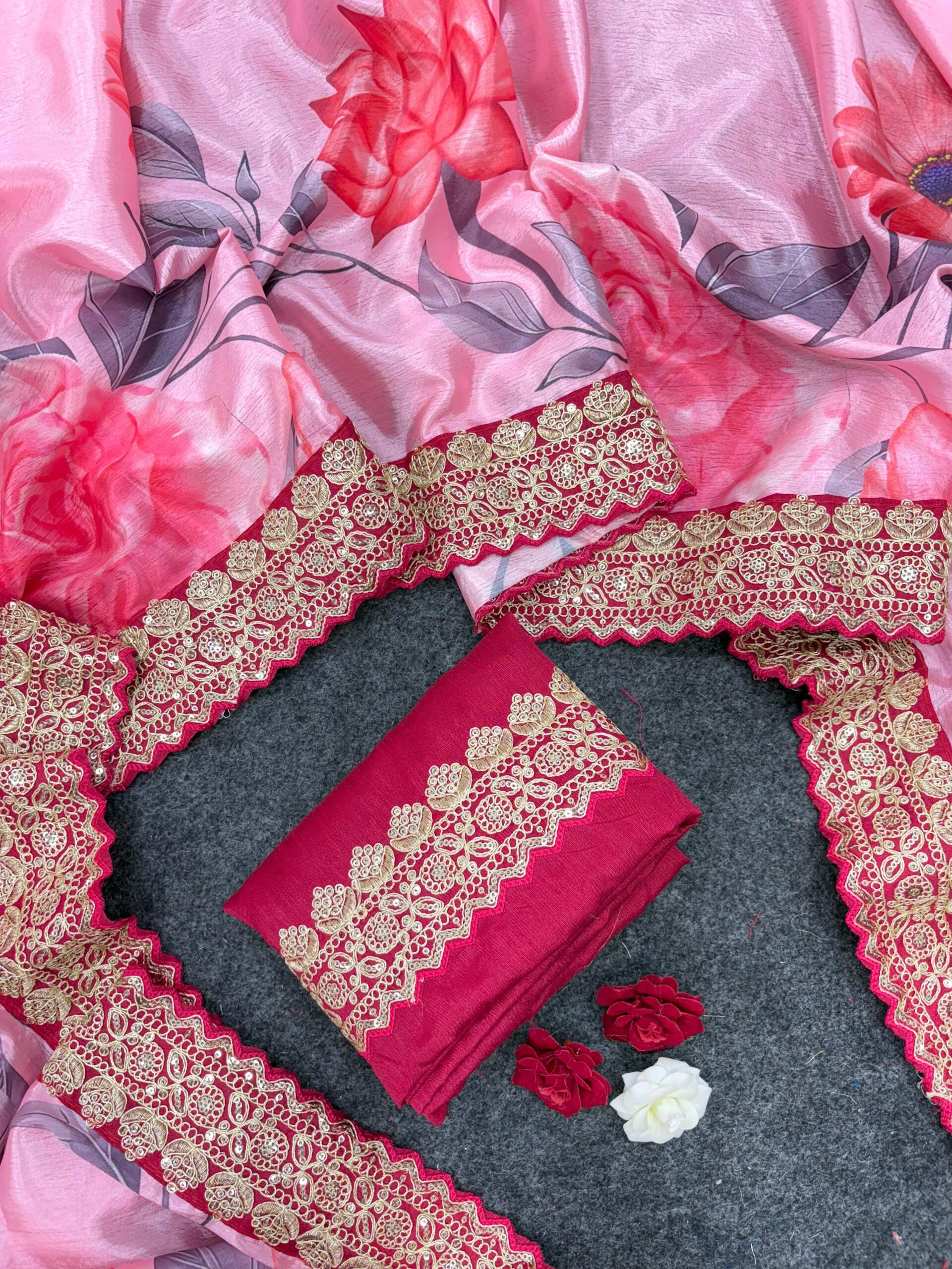 SAREE FAB. : Beautiful floral print in chinnon silk Fabric