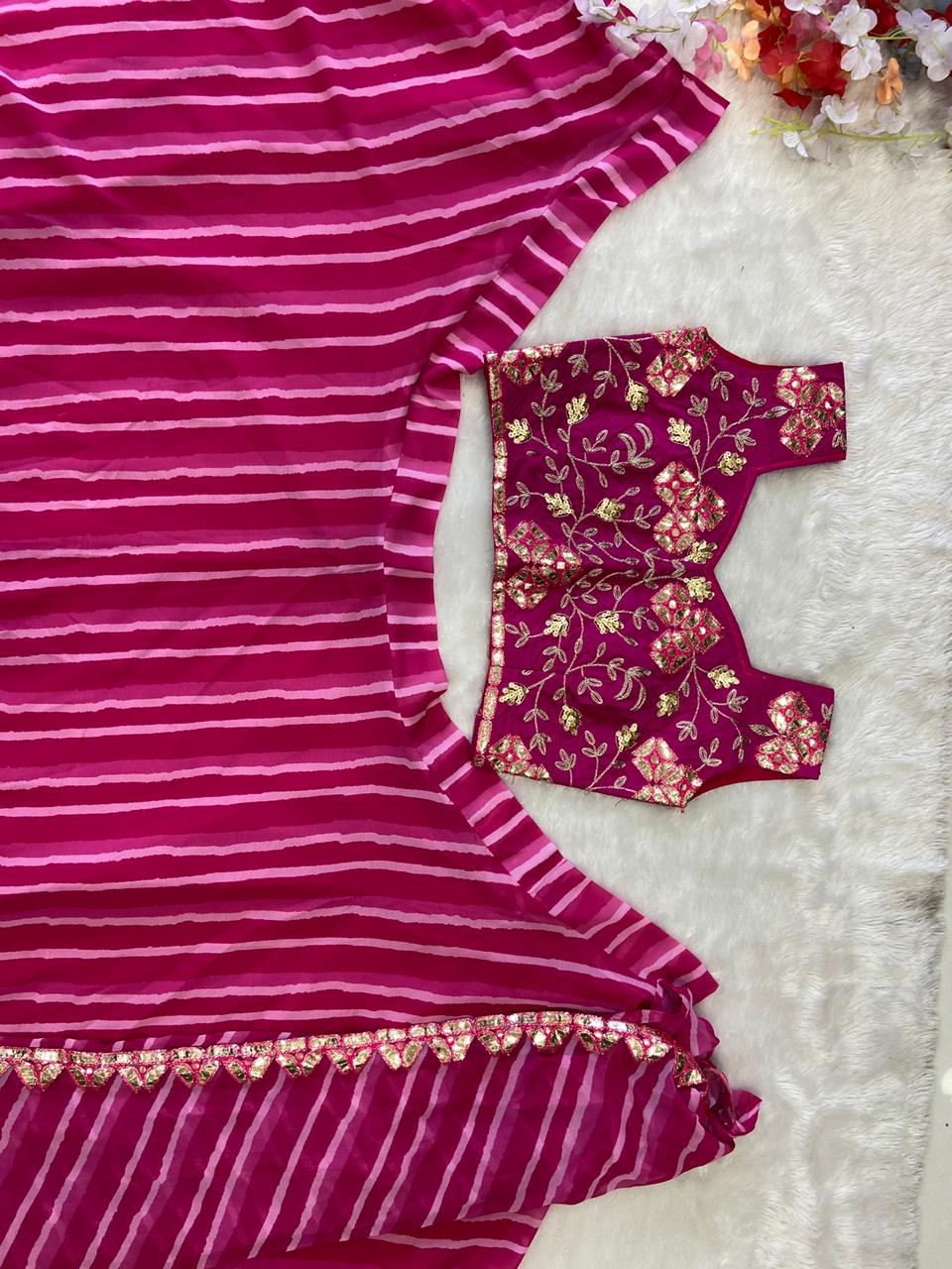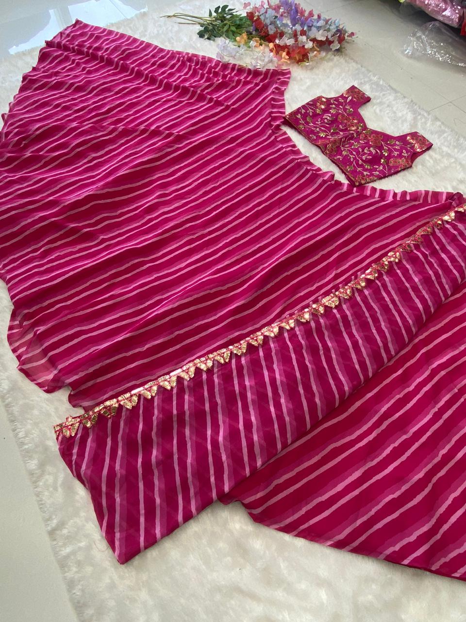 Koti : Premium Georgette Embellished With Beautiful Digital Print Work With Heavy Work Lace Border( Full Stitched Upto Xxl )
