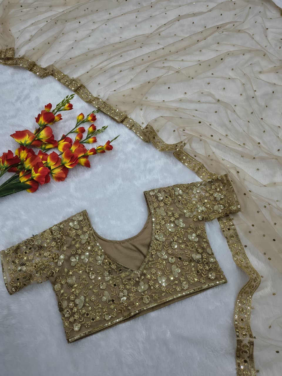 Blouse : Premium Butterfly Soft Net Embellished With Beautiful Jari Work, Embroidery Work, Sequins Work And Real Mirror Work , Both Side Work Front And Back( Unstitched)