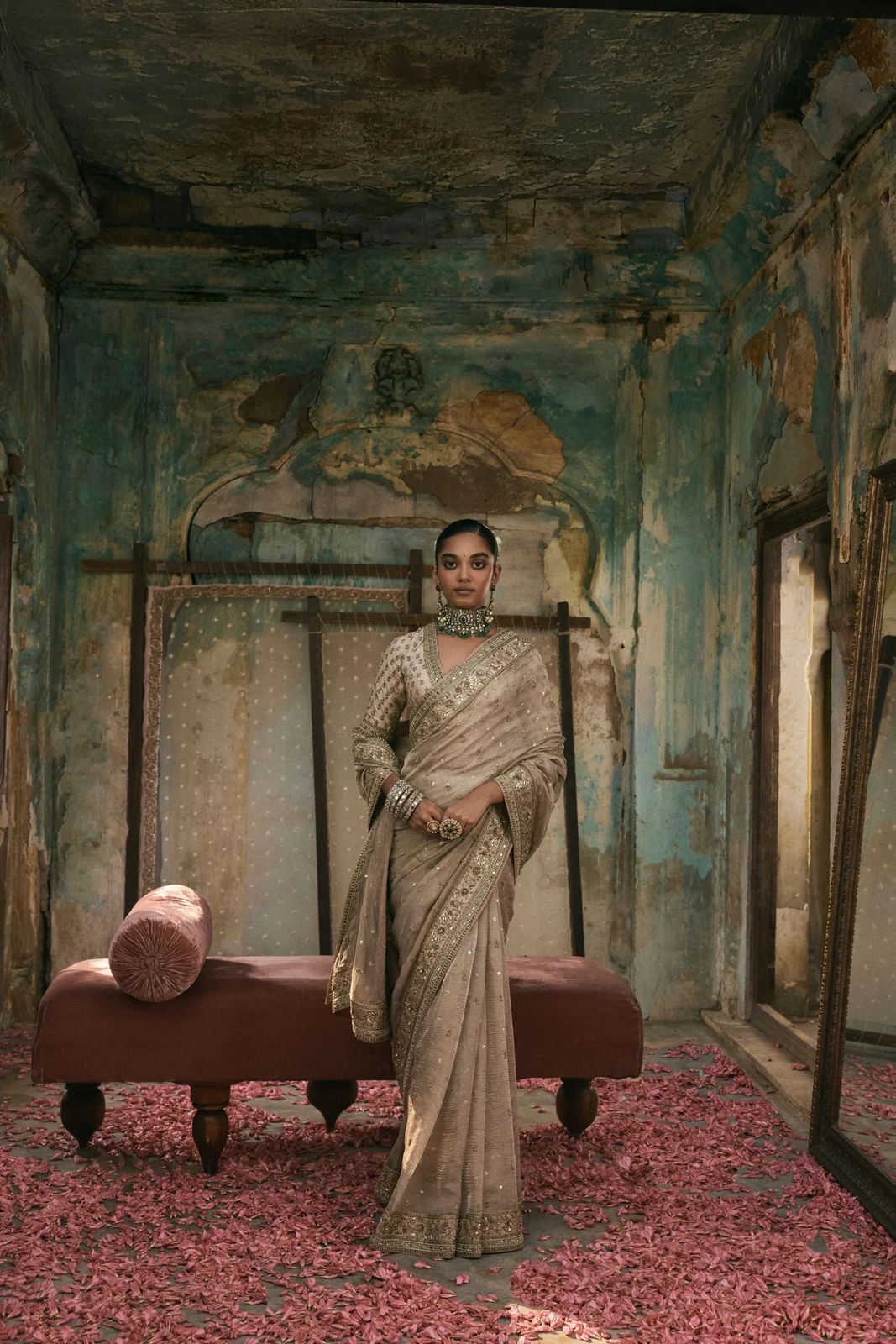 Blouse : Premium Diamond Silk Embellished With Beautiful Sequins Work And Beautiful Coding Work( Unstitched )