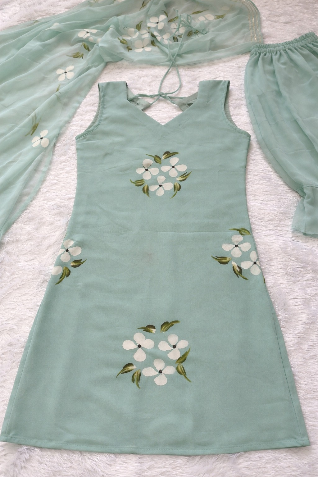 Top / Kurti – A graceful Pure Georgette Hand painted straight-cut kurti.