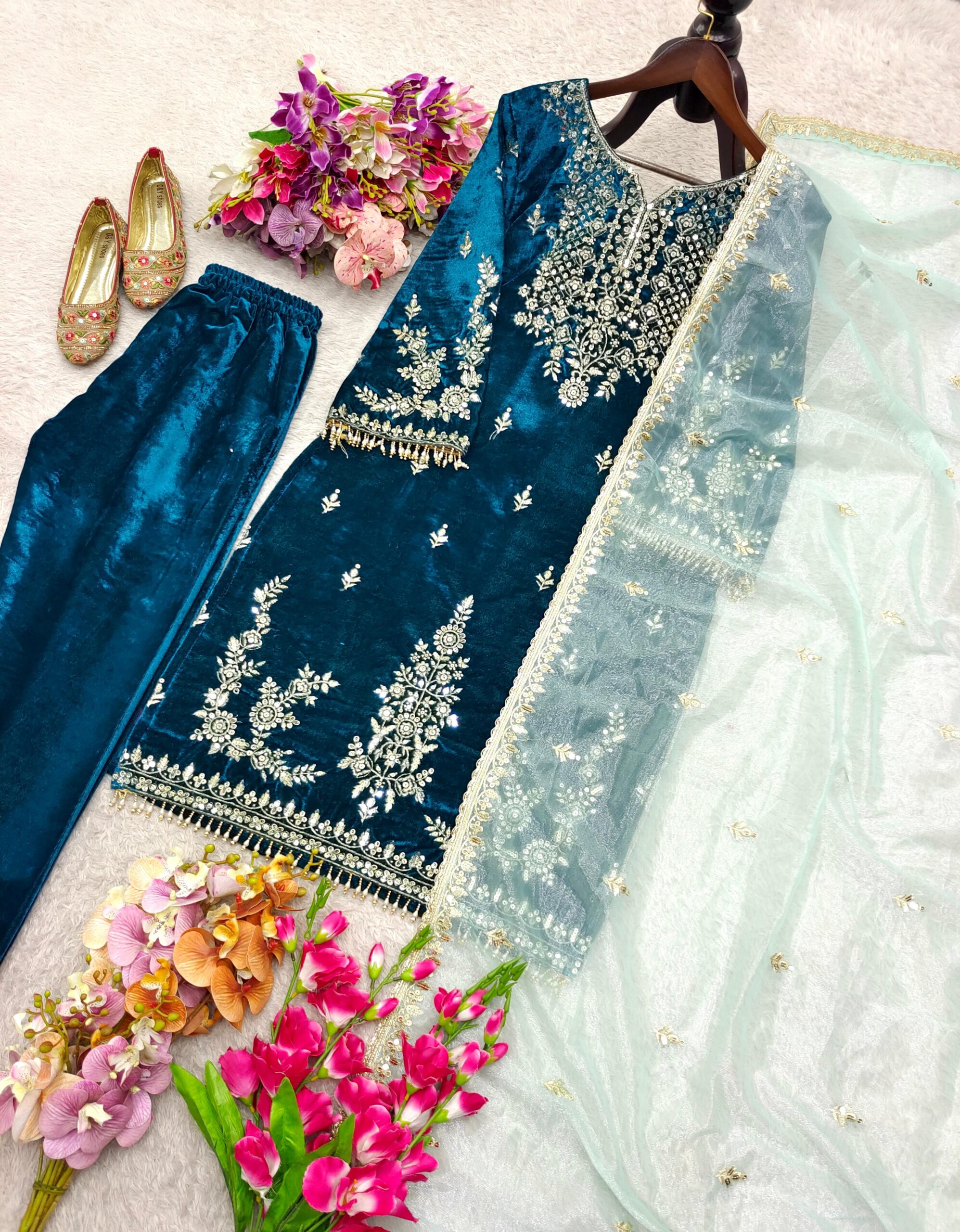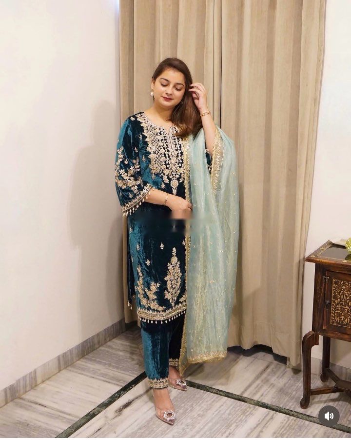 Top Fabric: Pure Viscose Velvet With Embroidery 5mm Sequences Work With Sleeves With Moti Less Work