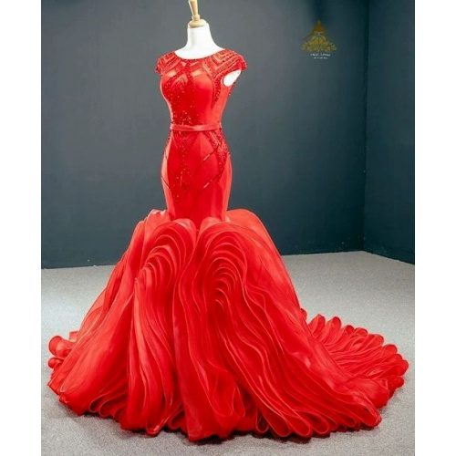 It is the wish of every girl to wrap up her with a beautiful dress, so this red mermaid tulle cap sleeve beading sequins backless prom dress is the best dress for the girls. However, it has very light weight tulle fabric stuff with beading embellishment. Similarly, its cap sleeve style and lace up back style are the latest things added to this dress. Apart from this, its built-in bra option completes your dress towards perfection.
