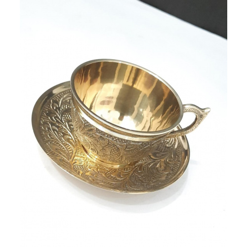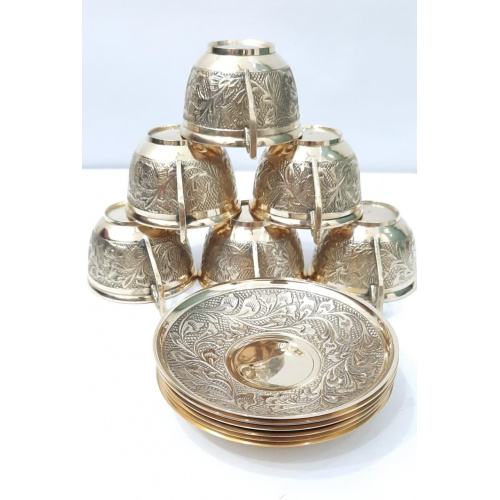 Ruchi metals Brass Cup & Saucer Utensil Set with 6 Cup & 6 Saucer (Embrossed)