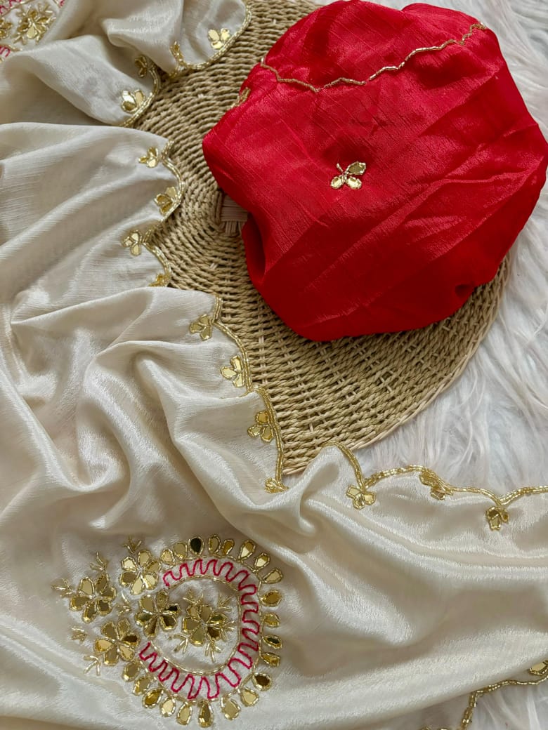 Soft chinon georgette sarees with hand work border with handwork butta blouse