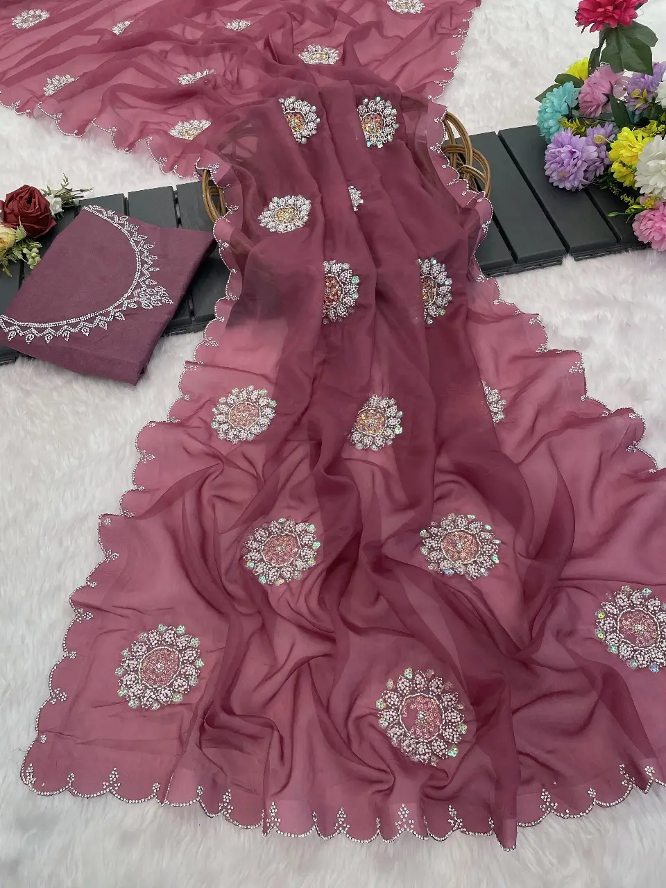 Soft crystal organza fabric having Heavy hand jarkhan work