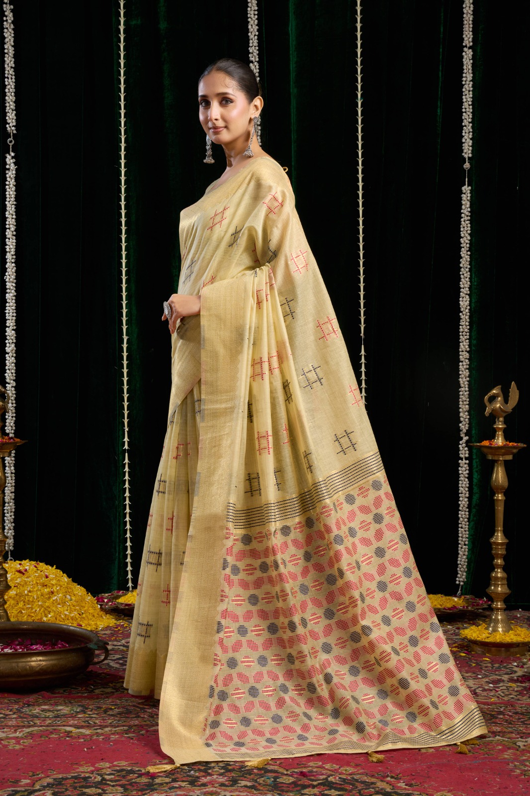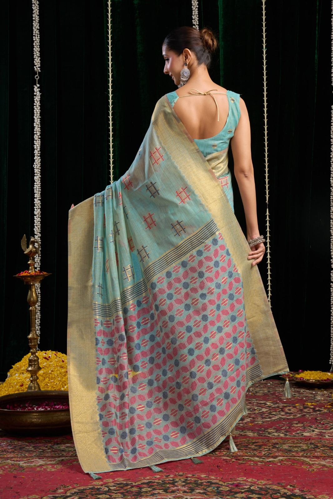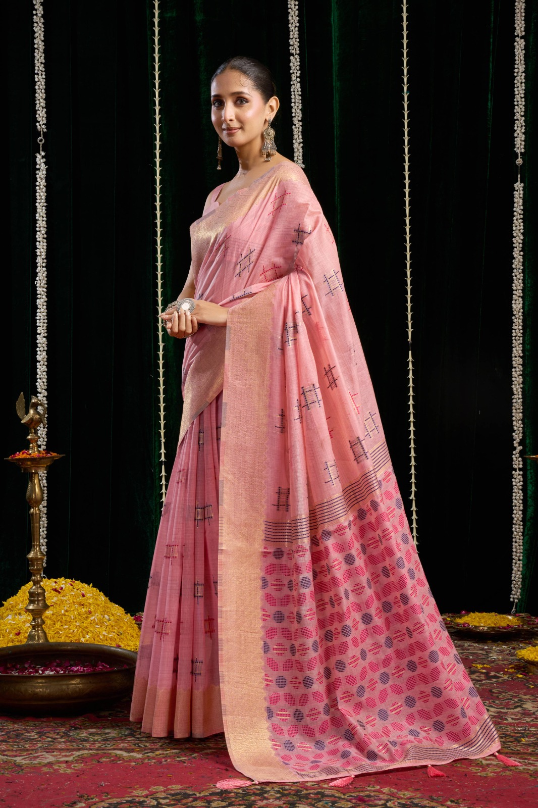 Saree Fabric – Soft spun cotton & Jari border with Zhallar