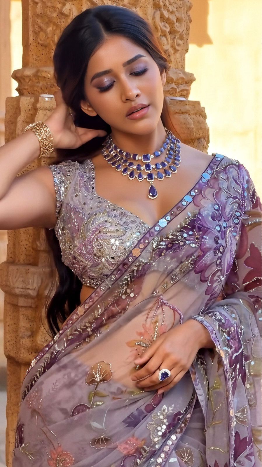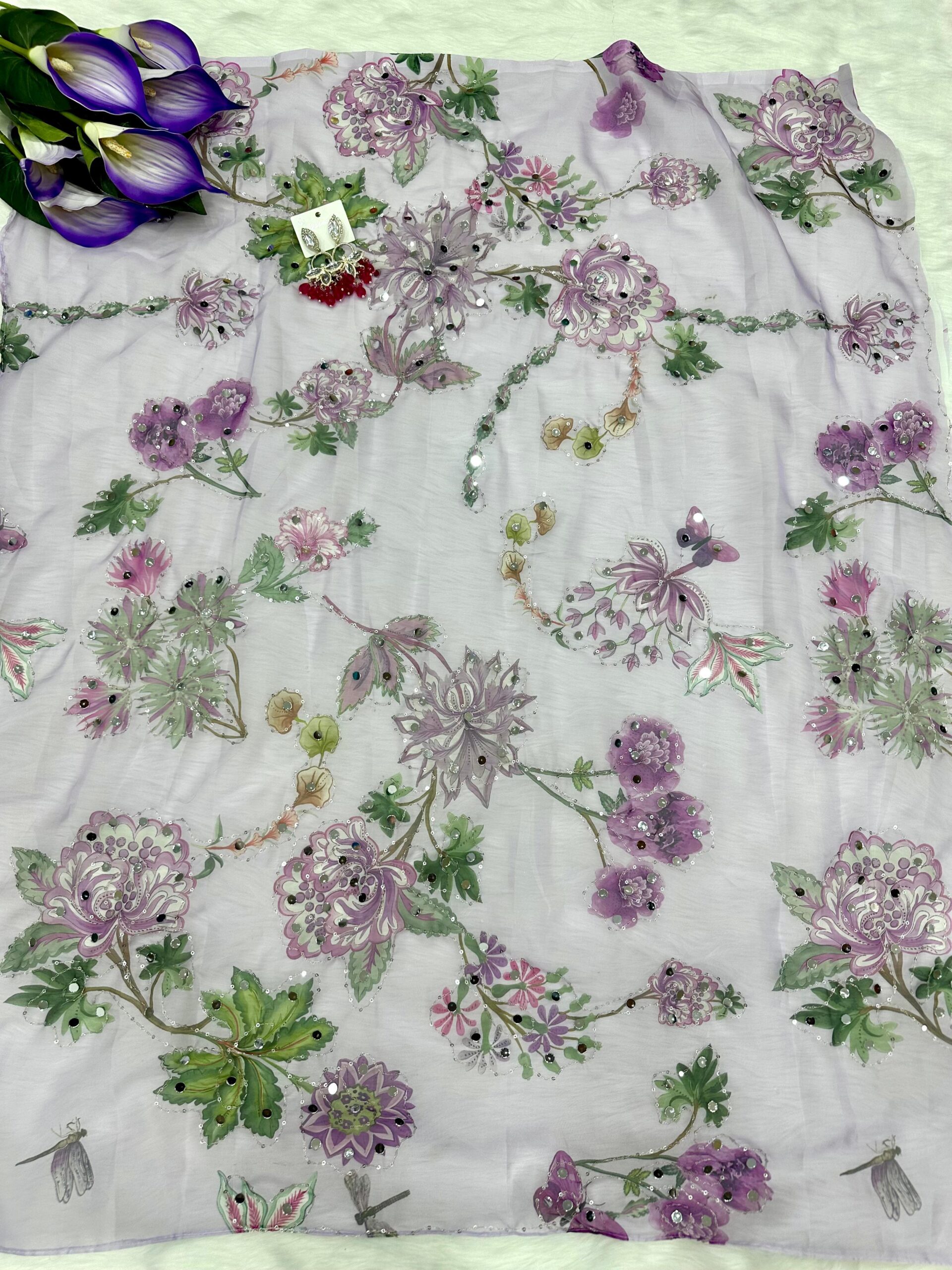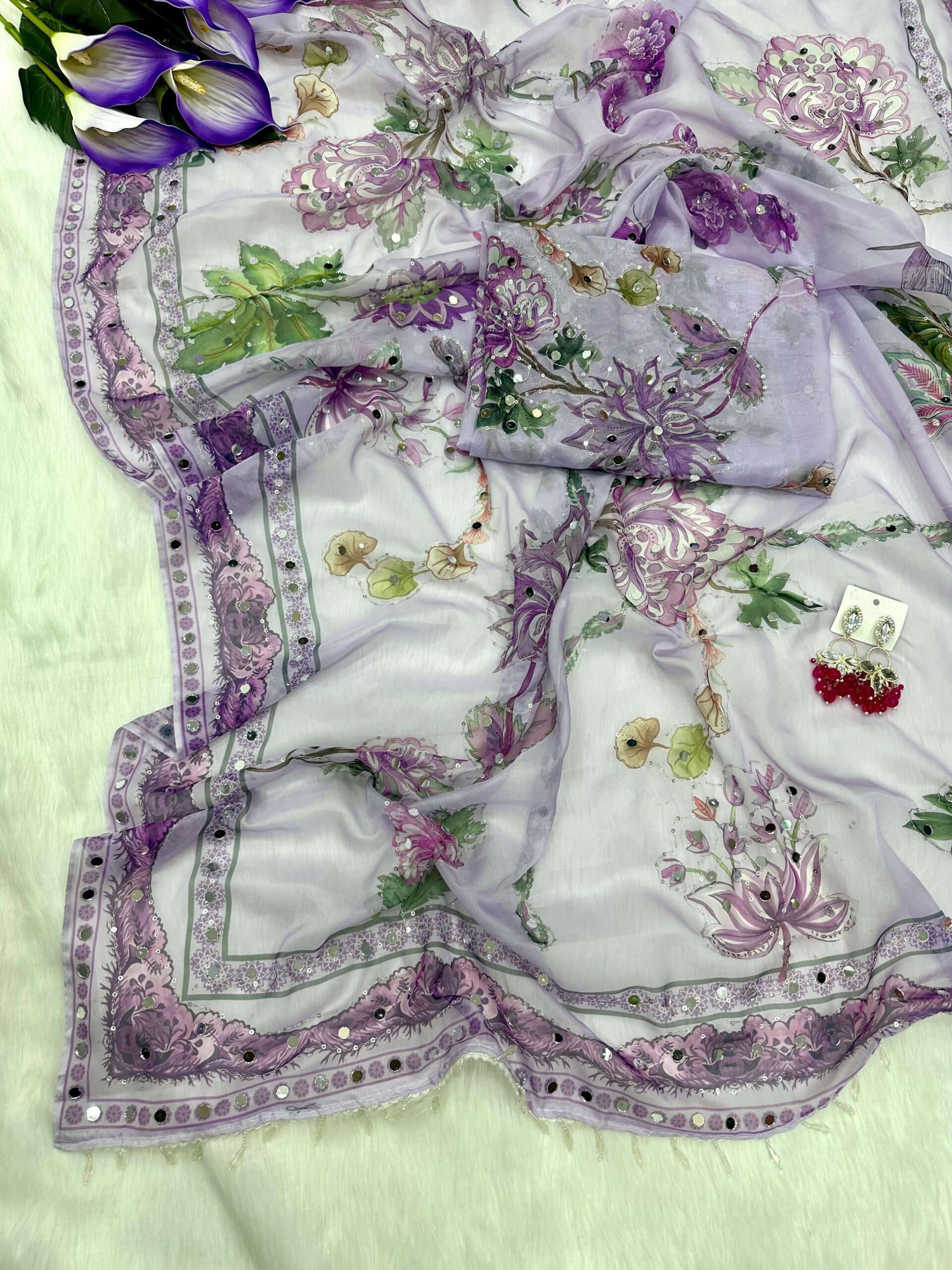 Blouse febric:- soft tebby silk printed blouse with siquance embroidery work and original mirror work (unstich)