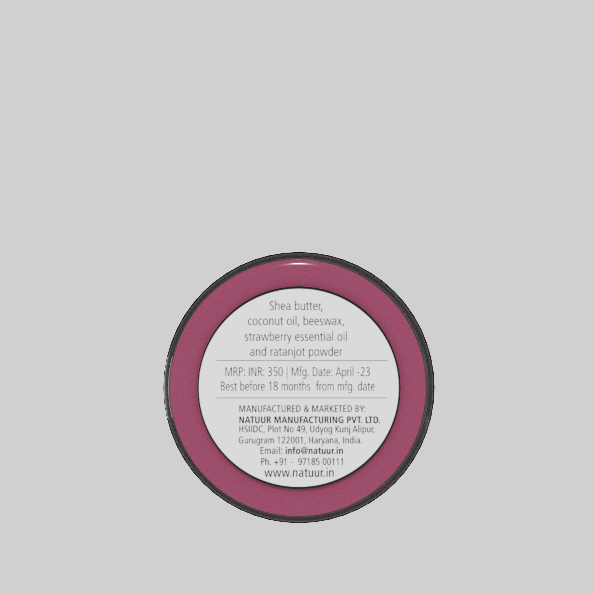 - Premium ingredients: Made with premium ingredients including Coconut oil, Cocoa butter, Shea butter, Beeswax, Castor oil, Essential oil of Strawberry, and Ratanjot powder.
