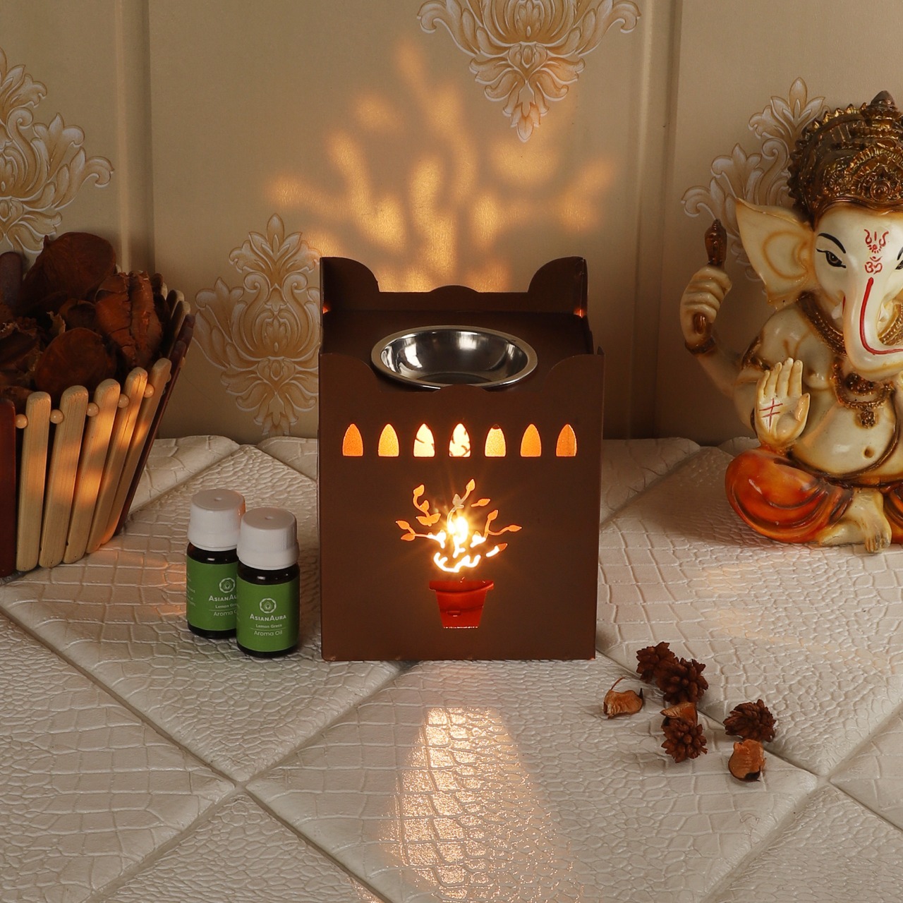 Tulsi Pot Diffuser With 2 Aroma Oil